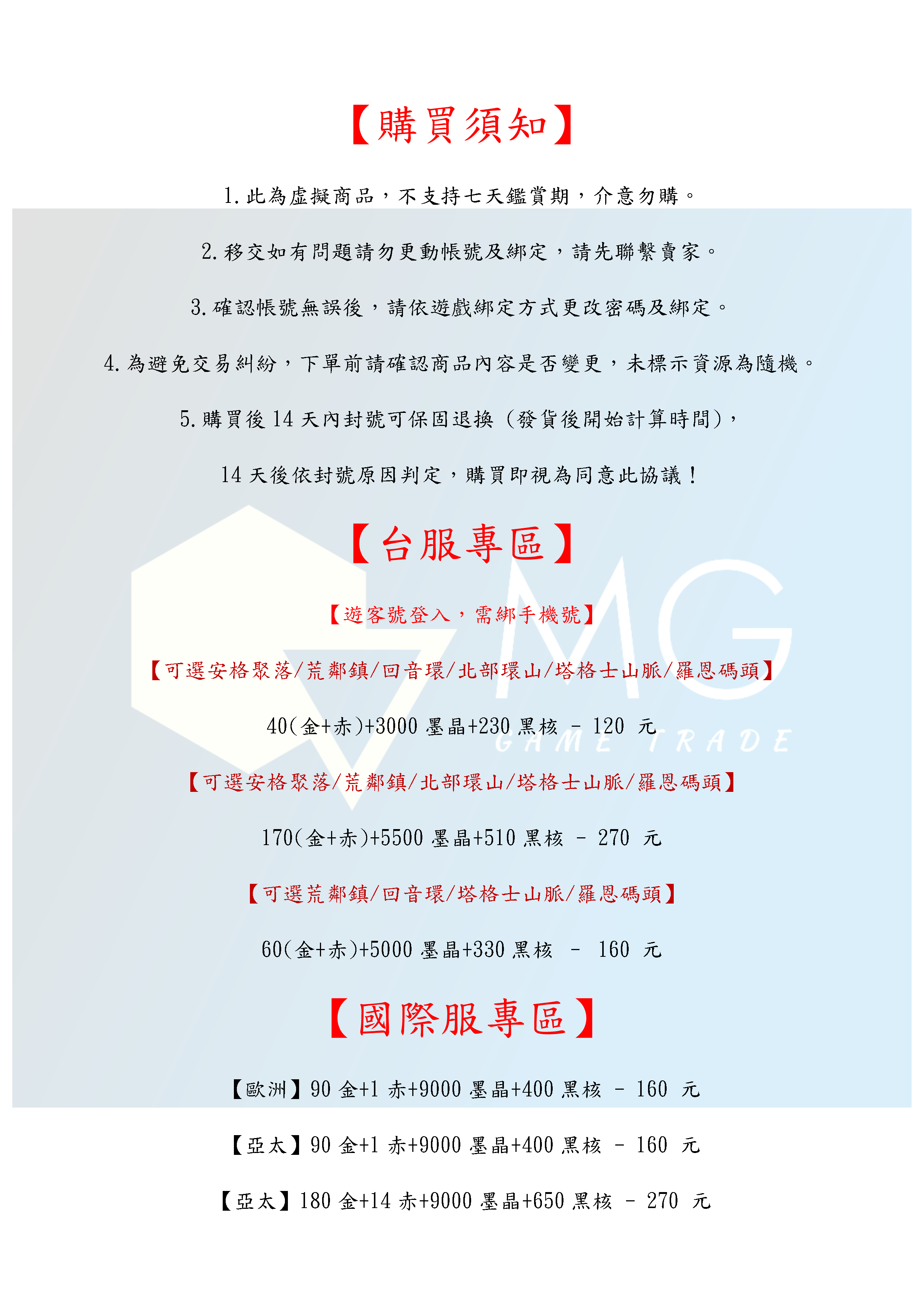 帳號 【初始號】 【MG數碼】 台服 陸服 國際服 多石號 多金核號 初始號 自抽號 自選號