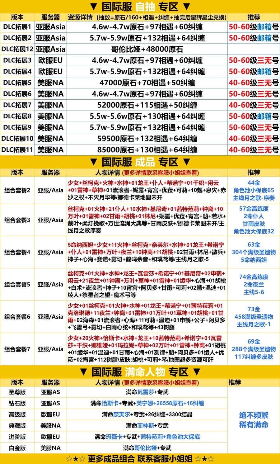 全 8591 首家 原神亞服國際服US台服Asia自抽號十級初始號七級組自選刻晴迪盧克