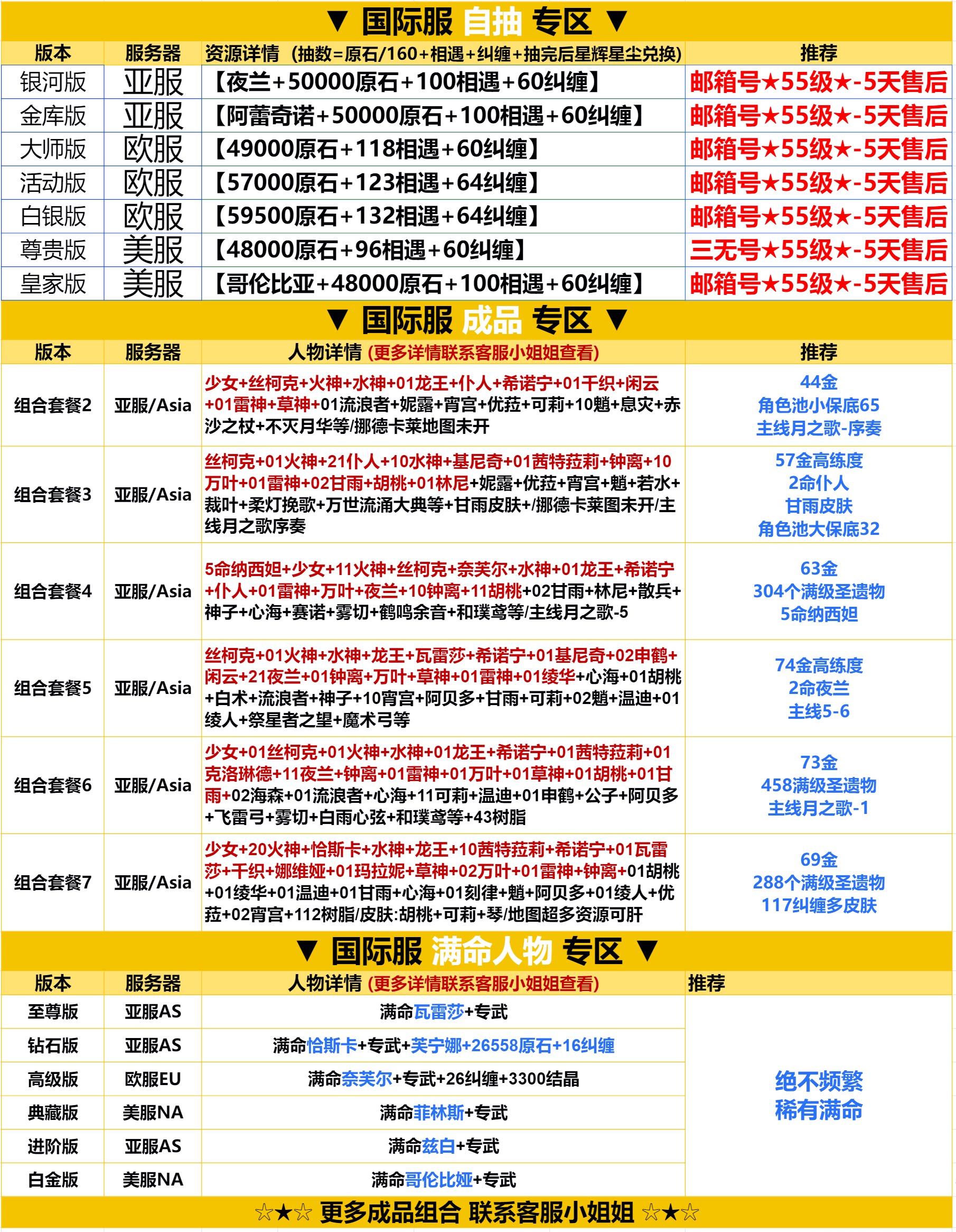 亞服★三無★52級★【夜蘭+艾梅莉埃+原石29000】-未綁郵箱