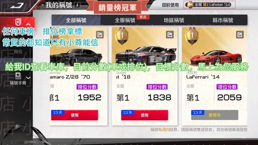 冠軍5 到 車神5階 每段250元