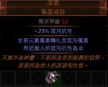 道具 PoE👌傳奇→原罪.紫晶戒指 (元素傷害轉化為混沌傷害、附近敵人混沌抗為0