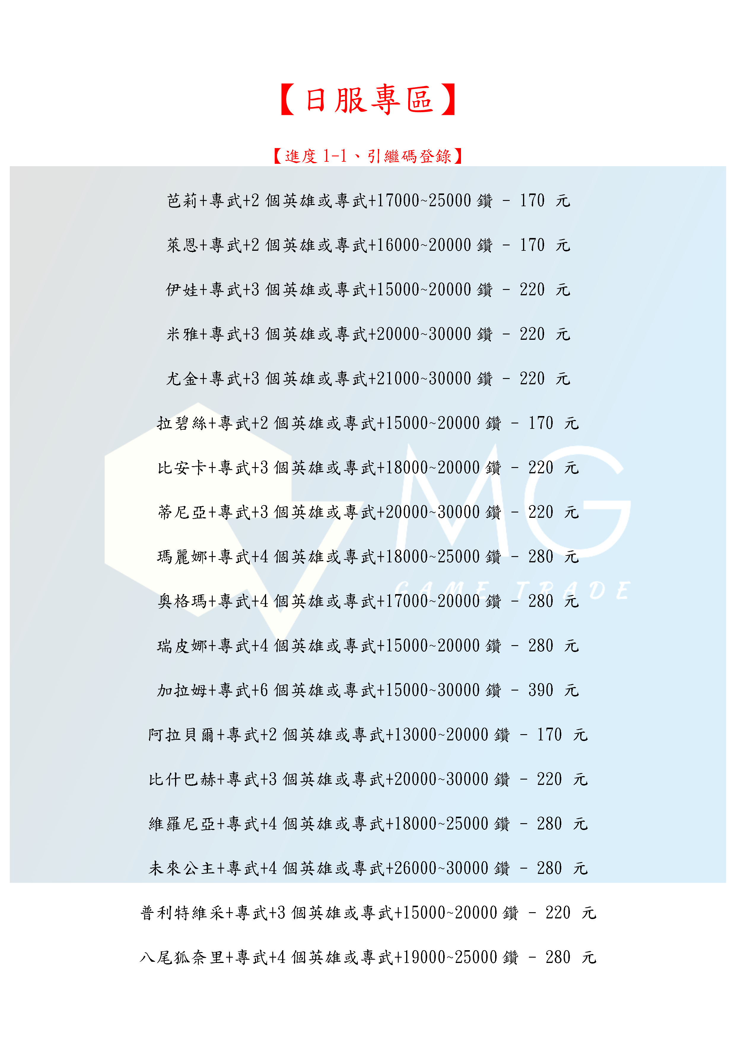 帳號 【初始號】 【MG數碼】 台服 國際服 日服 多石號 初始號 自抽號 自選號 自選組合