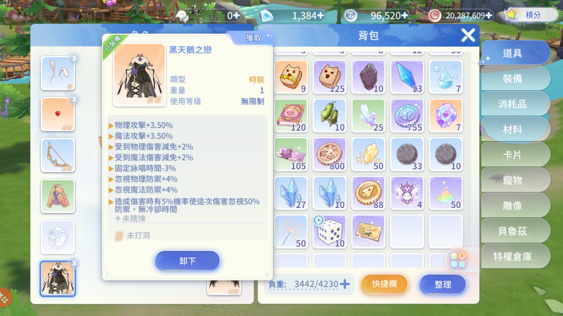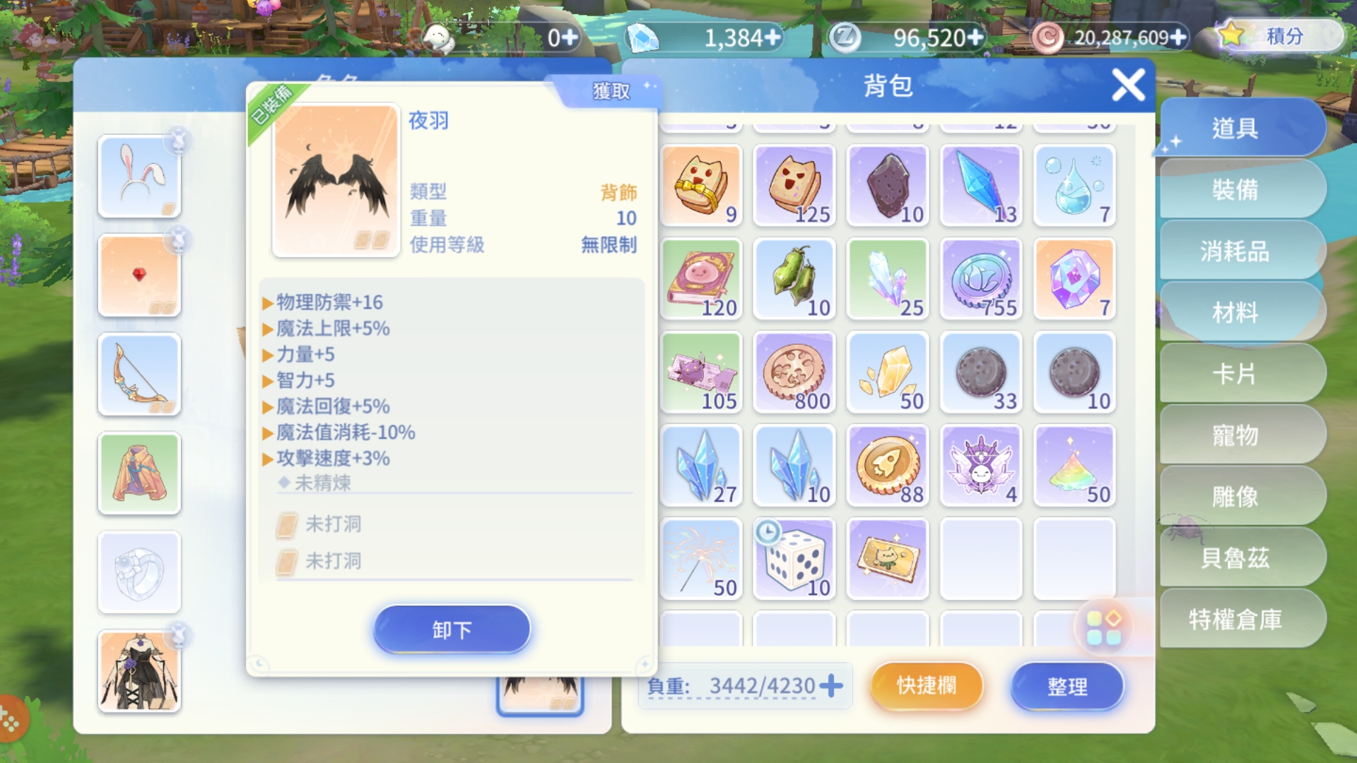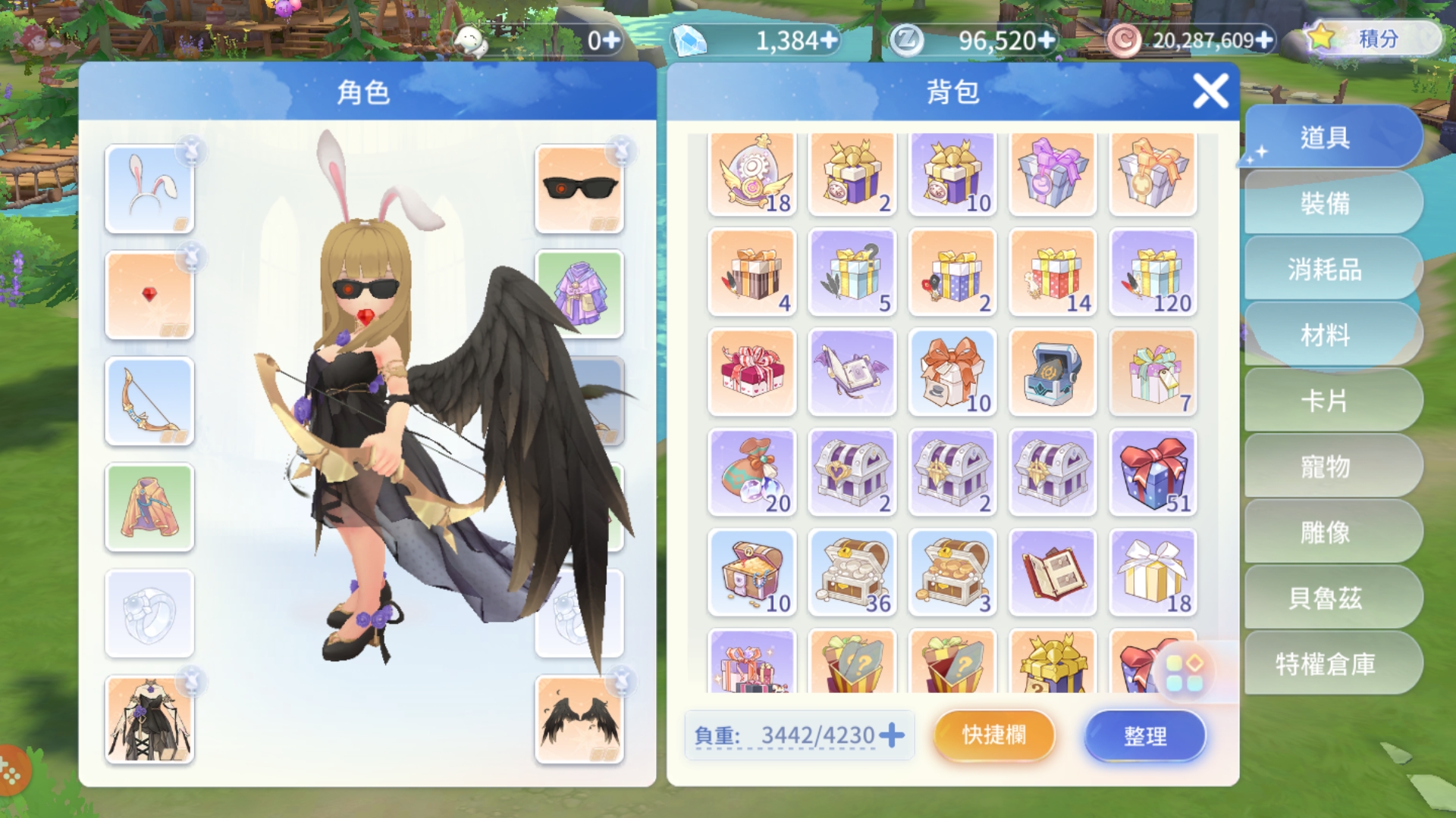 新服【旅夢人3】/25等女弓箭手/夜羽+黑天鵝之戀+安塔夏o型+神兔歡歡+改名卡【綁定全新google整組給你】