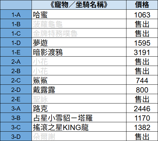 販售圖中寵物/坐騎(召喚石)