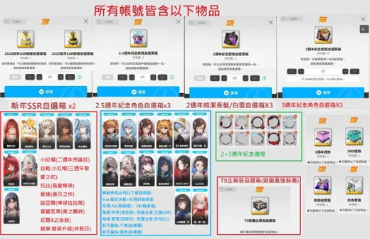 ^✨含28000鑽石+高級招募券x143+金票x486+企業T9裝自選箱x1(遊戲最強裝備)+自選SSR箱x2(可選白兔,完美t0輔助開局)