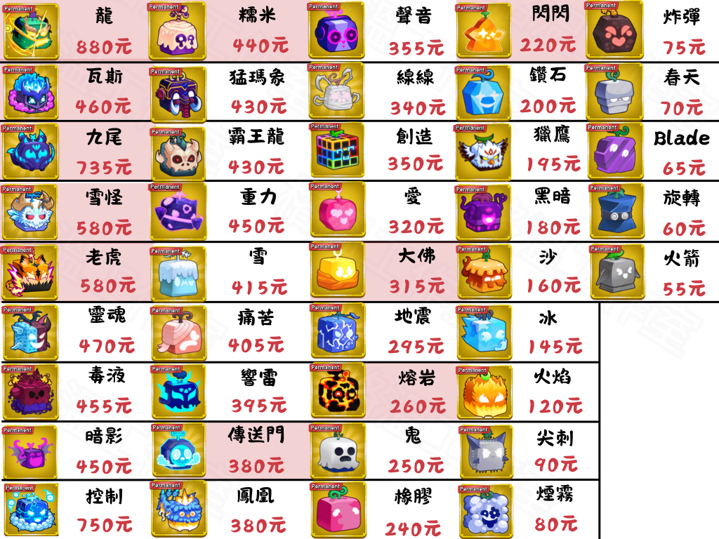 道具 ❰格溫❱🍁Blox Fruits 永久果 通行證 龍880$