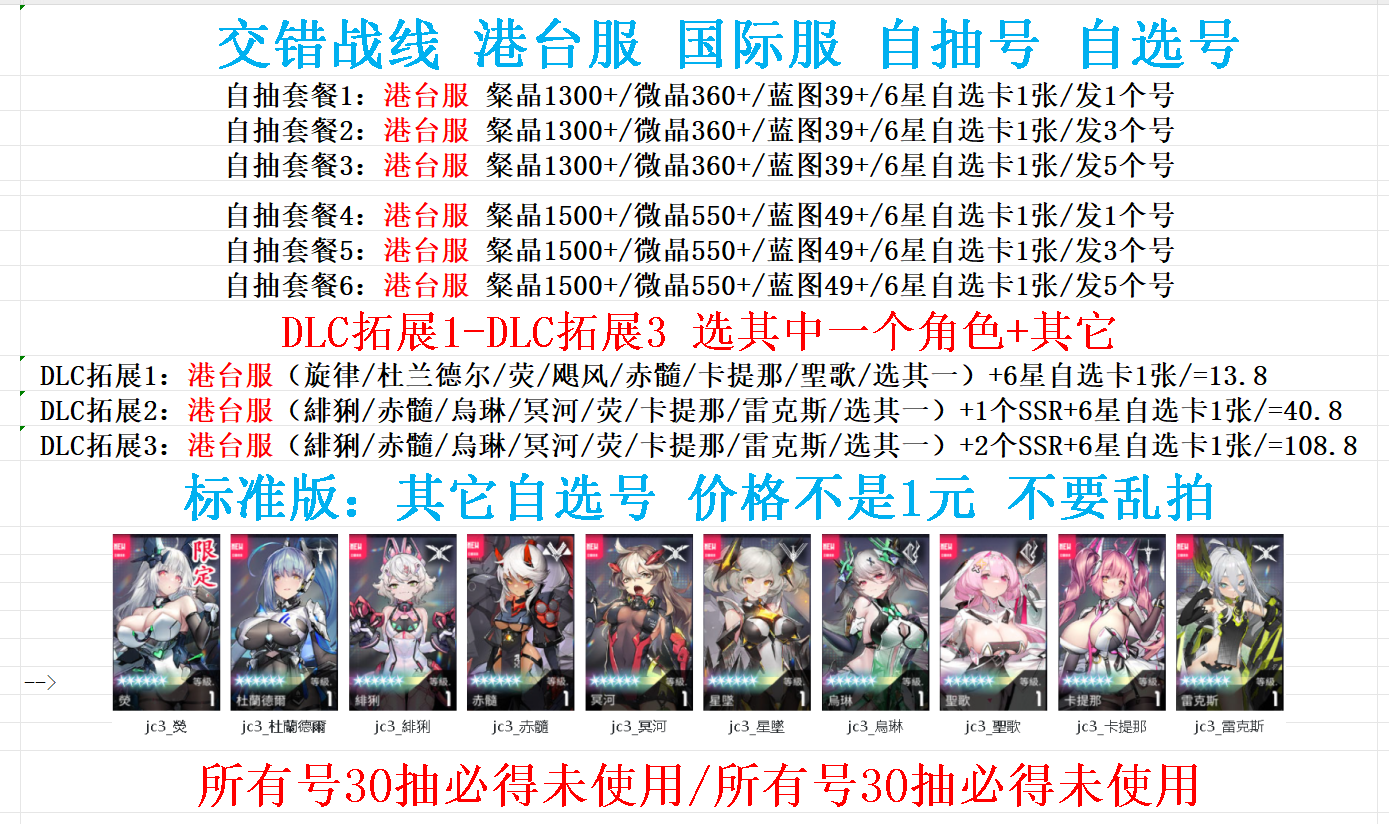 全 8591 首家 交錯戰線初始號自抽號蘋果ios0安卓開局號成品自選組合B服/官服