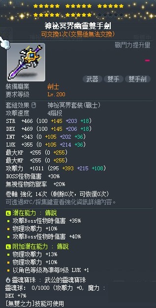 道具 【神秘冥界幽靈雙手劍】 25星 武公 雙B物 救世卷軸 覺醒星火 雙傳 雙S 雙手劍 25星