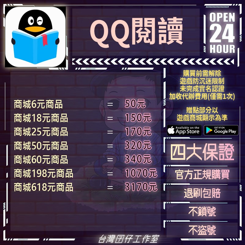 代儲【人民幣18元商品=150元】 🏆24H客服🏆現貨秒出🔥台灣囝仔🔥QQ閱讀陸服🔥20萬保證金
