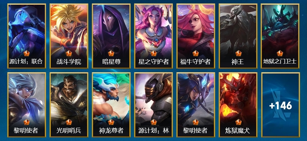 賈克斯-光明騎士,慎-腥紅之月 鬼武者,薩勒芬妮-星之守護者,賈克斯-星域武神,瑟提-龍騰虎躍,加里奧-秘旅探索者,嘉文四世-福牛守護者,墨菲特-無畏號,希瓦娜-冰霜亞龍,錘石-腥紅之月,格雷福斯-泳池派對,德萊厄斯-神王,莫甘娜-刀鋒女王,古拉加斯-飛車暴走族,亞索-腥紅之月,傑斯-天啟騎士,劫-天煞,蒙多醫生-戰爭血統 蒙多,安妮-福牛守護者,格雷福斯-光明哨兵,奧莉安娜-光耀之心,伊芙琳-緋金魅影,潘森-鋼鐵意志,蔚-鐵拳執事,希瓦娜-銀河魔裝機神,卡特琳娜-源計劃:雄心,錘石-盜夢暗影,易-源計劃:林,菲奧娜-福牛守護者,卡蜜爾-星域審判官,阿利斯塔-福牛守護者,凱南-刺客信條,德萊文-靈魂收割者,厄運小姐-西部牛仔,艾希-極地女神,銳雯-黎明使者,努努和威朗普-喪屍,菲奧娜-皇家守衛,潘森-獵龍勇士,阿木木-小小騎士,吉格斯-兔寶寶,亞索-西部牛仔,劫-衝擊之刃,莉莉婭-黑夜使者,凱特琳-鐵血狙擊手,卡茲克-霸天異形,蕾歐娜-泳池派對,格雷福斯-黑暗騎士,崔絲塔娜-遊擊隊員,雷克頓-鱷霸,格雷福斯-絕命機甲,蓋倫-鋼鐵軍團,娜美-緋金鮫靈,菲奧娜-泳池派對,悠米-烘焙童謠,德萊厄斯-福牛守護者,阿狸-偶像歌手,提莫-熊貓,加里奧-神龍守衛,加里奧-地獄火,崔絲塔娜-馴龍炮手,提莫-小蜜蜂,李青-神拳,厄運小姐-女帝,娜美-河水之靈,易-靈能特工,亞託克斯-腥紅之月,蔚-女警官,蓋倫-神王,金克絲-末路狂花,墨菲特-黑曜石守護者,娜美-鮫妮座人,泰達米爾-光耀之刃,德萊文-鬥魂無雙,薇恩-獵龍勇士,永恩-黎明使者,艾希-源計劃:聯合,拉克絲-遊俠法師,菲茲-絨毛,永恩-水晶玫瑰,璐璐-邪惡女巫,伊澤瑞爾-戰鬥學院,阿克尚-戰鬥學院,崔斯特-王牌艦長,凱南-腥紅之月,布隆-末路管家,德萊厄斯-熱血班長,永恩-靈魂蓮華,洛-晨星之翎,德萊文-破敗軍團,易-神龍尊者 馭風嘯龍,伊澤瑞爾-星之守護者,燼-滅跡行者,厄運小姐-福牛守護者,阿狸-電玩女神,亞索-戰場之王,希瓦娜-秘旅探索者,雷恩加爾-暗黑武士,卡特琳娜-海賊魅影,阿木木-地獄火,安妮-小紅帽,伊澤瑞爾-冰川勇者,菲奧娜-緋金麗刃,嘉文四世-暗星,崔絲塔娜-歐米伽小隊 魔鬼傘兵,亞索-靈魂蓮華,燼-暗星尊,亞索-黑夜使者,阿狸-幻夢甜心,內瑟斯-煉獄魔犬,賽娜-真實傷害,盧錫安-未來戰士,厄運小姐-破敗軍團,內瑟斯-盜夢者,蓋倫-海上霸主,韋魯斯-迅箭,阿卡麗-源計劃:暗影,卡爾瑪-黎明使者,崔斯特-逍遙賭俠,傑斯-神奇先驅,艾希-王牌司令,蕾歐娜-燒烤女神,盧錫安-西部魔影,卡特琳娜-死亡誓約,亞索-鬥魂無雙,蔚-雙城之戰,蔚-源計劃:裁決,金克絲-光耀之芒,亞索-源計劃:風,韋魯斯-暗星,菲茲-兔寶寶,潘森-清剿小隊,璐璐-光耀之靈,庫奇-海牛騎手,阿卡麗-銀色之牙,德萊文-緋金戰斧,璐璐-星之守護者,菲奧娜-玉劍傳說 無雙,卡莎-星之守護者,拉莫斯-制勝金球,菲茲-虛空海靈,劫-死亡誓約,辛吉德-鍊金狂士,崔斯特-地底世界,內瑟斯-創世魔神,蔚-燎原烈焰,蕾歐娜-月蝕騎士,辛吉德-衝浪高手,卡爾瑪-星域先知,娑娜-繆斯女神,趙信-秘密特工,嘉文四世-王牌上將,凱爾-末世天使,卡蜜爾-魔女,亞託克斯-山海繪卷,劫-源計劃:陰,加里奧-風執事,加里奧-地獄之門衛士,李青-至高之拳