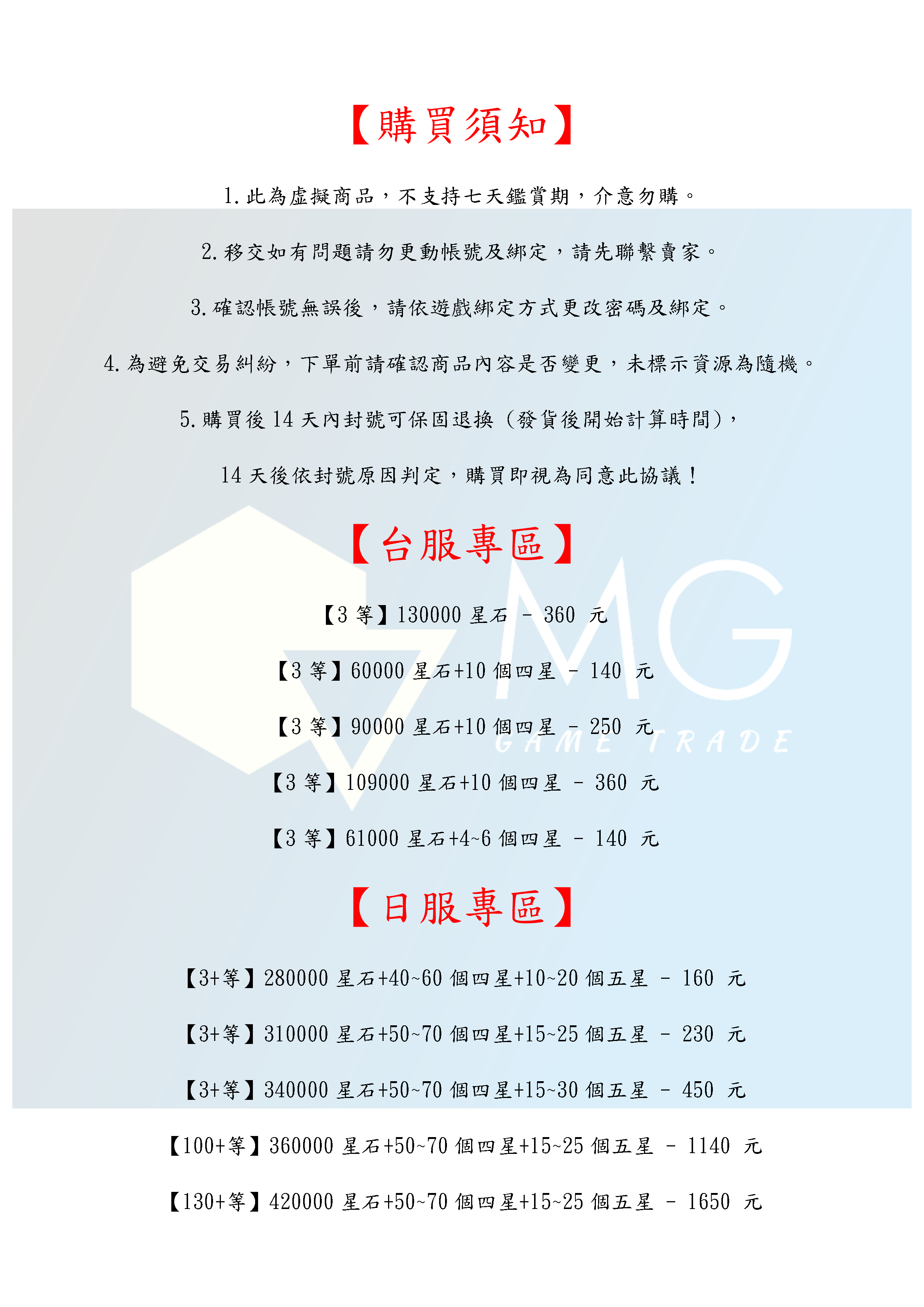 帳號 【初始號】 【MG數碼】 台服 日服 陸服 多石號 初始號 自抽號 自選號 自選組合