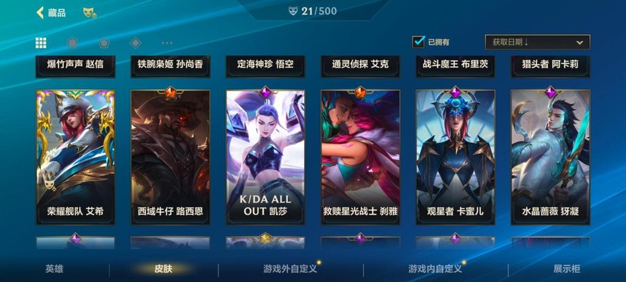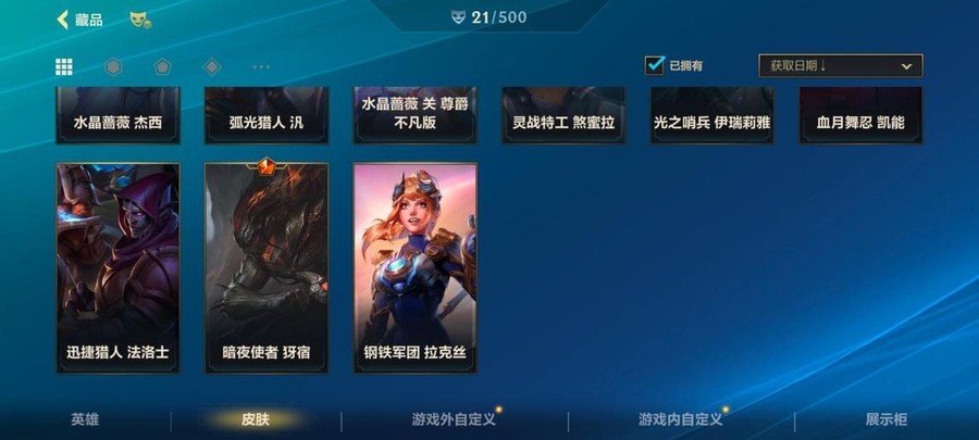新號建立沒多久的,稀有造型好幾個,都是熱門英雄