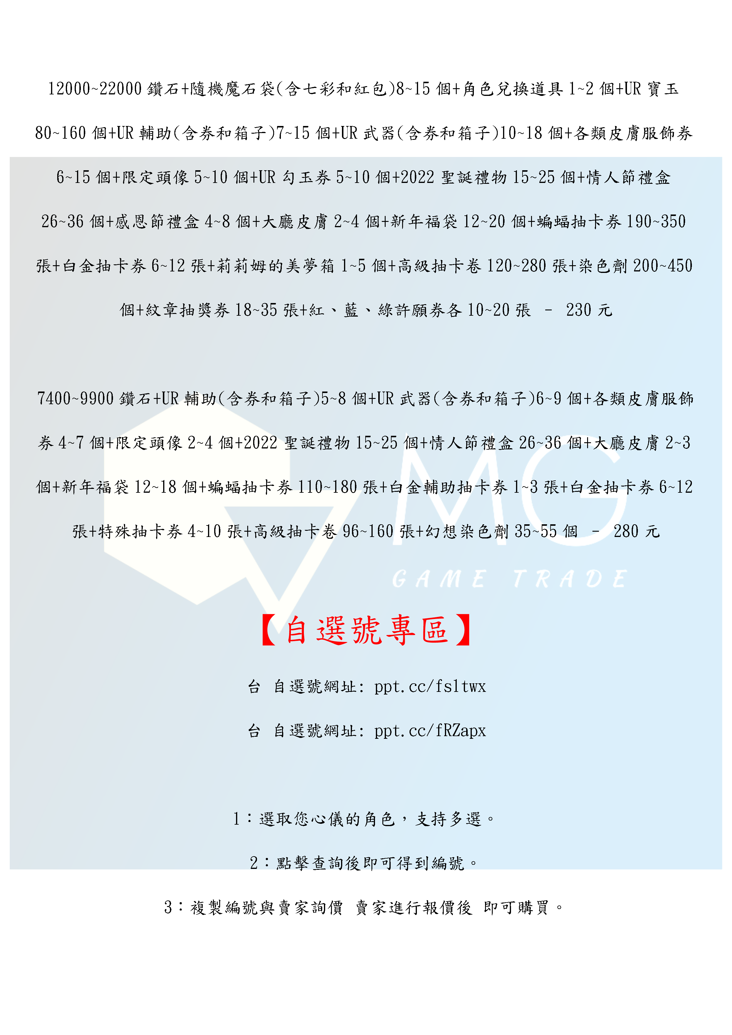 帳號 【初始號】 【MG數碼】台服 國際服 steam 多石號 多鑽石號 自抽號 初始號 自選組合