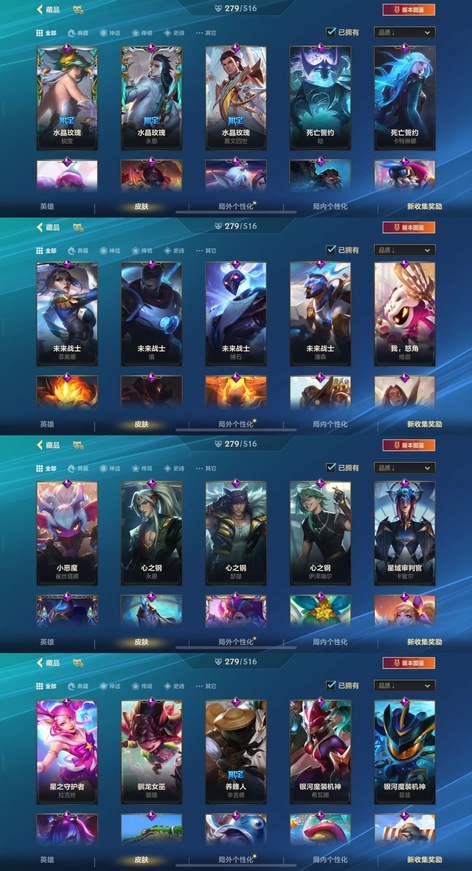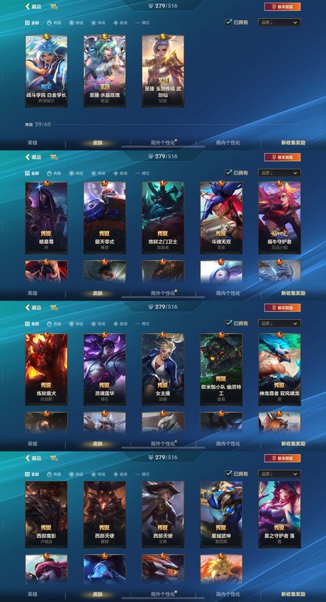 yxs48英雄聯盟手遊蘋果qq106英雄279造型3神話29傳說159史詩水晶玫瑰 白金學長 玉劍傳說