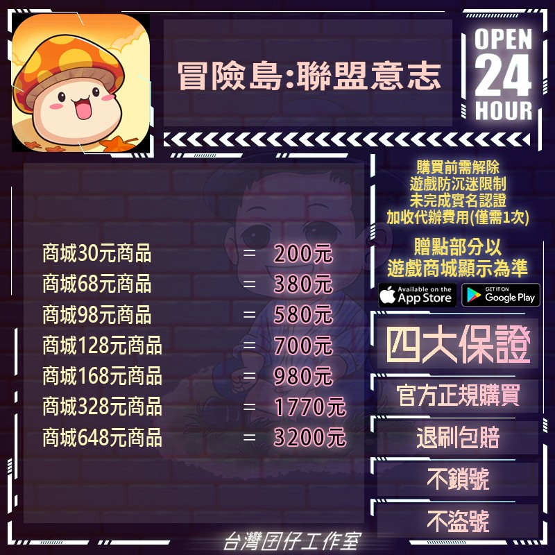 代儲【人民幣30元商品=200元】 🏆24H客服🏆現貨秒出🔥台灣囝仔🔥冒險島:聯盟意志陸服🔥20萬保證金