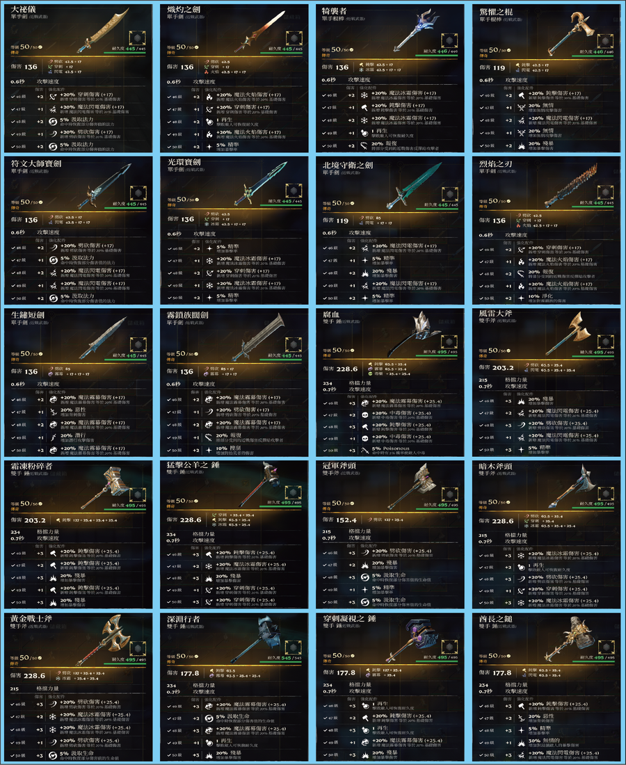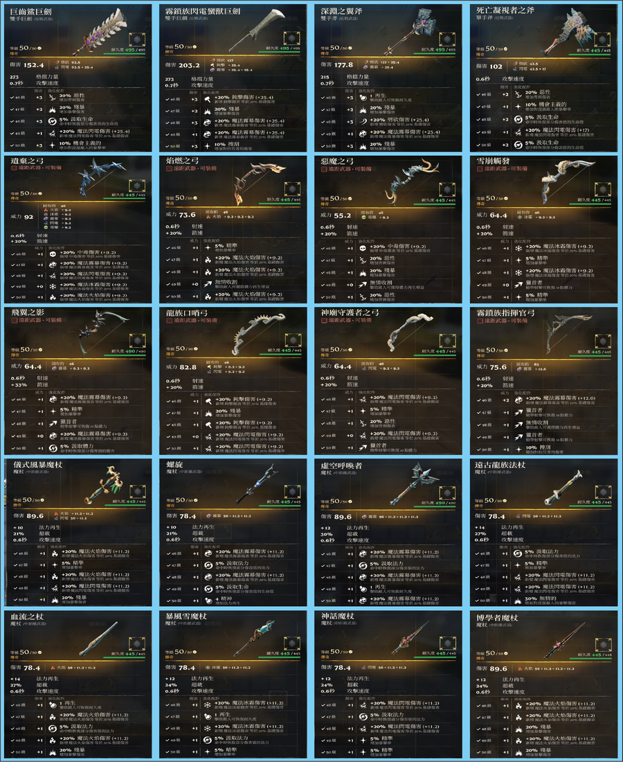 各式武器: 霧幕交織者(30等法杖)=50t 弓類(30等傳奇)=50t