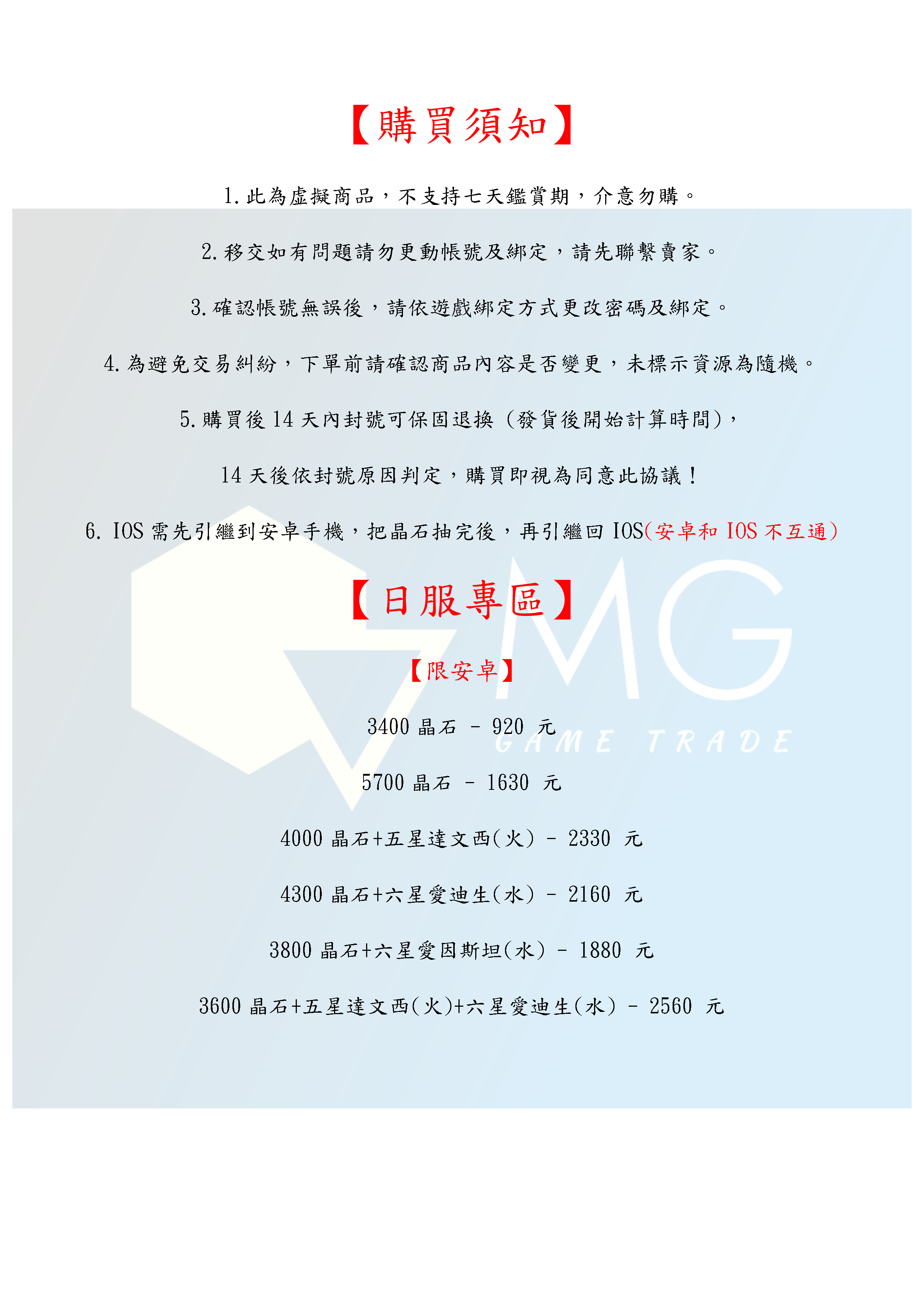 帳號 【初始號】 【MG數碼】 日服 多石號 多晶石號 初始號 自抽號 自選號
