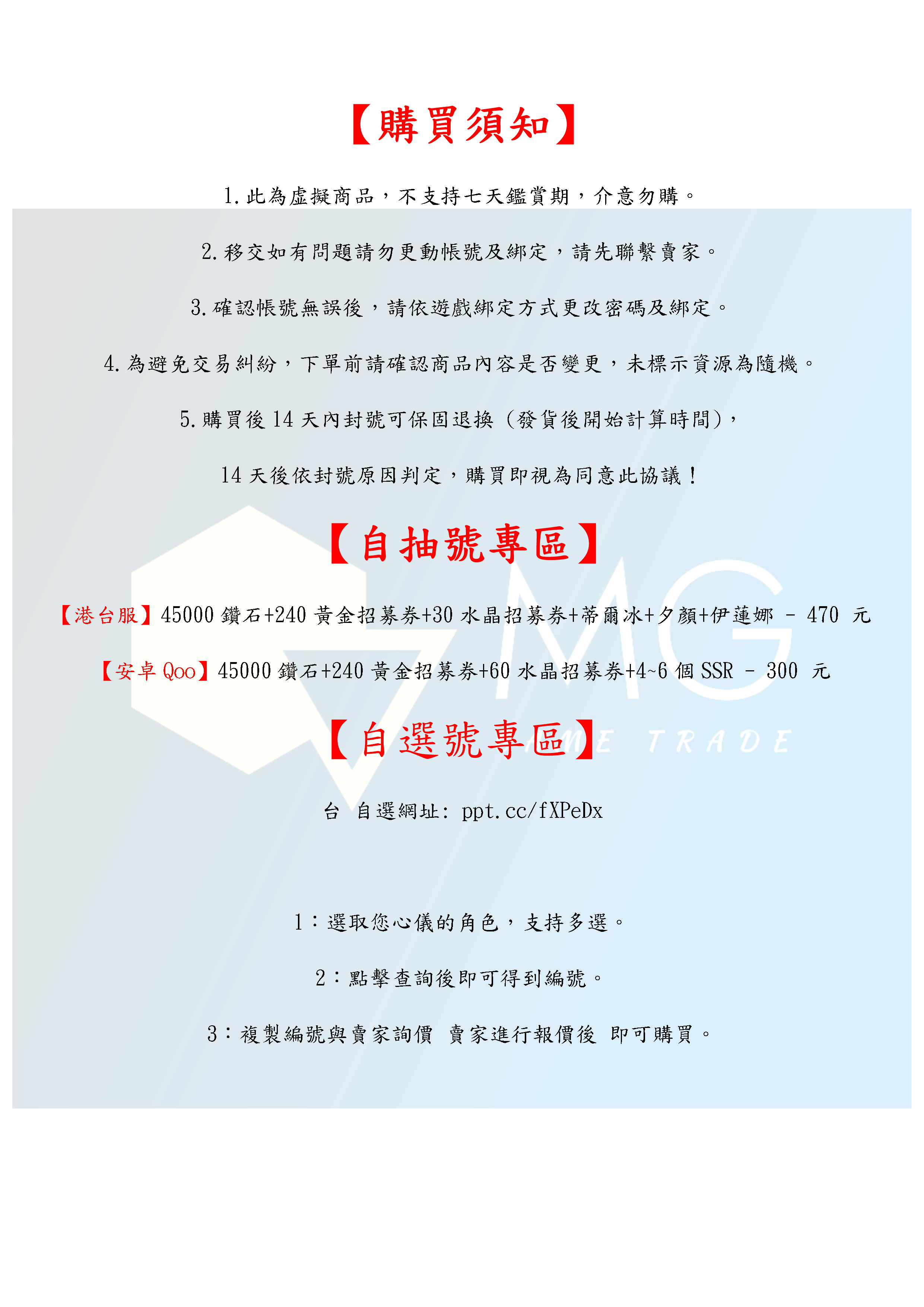 帳號 【初始號】 【MG數碼】 台服 陸服 多石號 多鑽石號 初始號 自抽號 自選號 自選組合