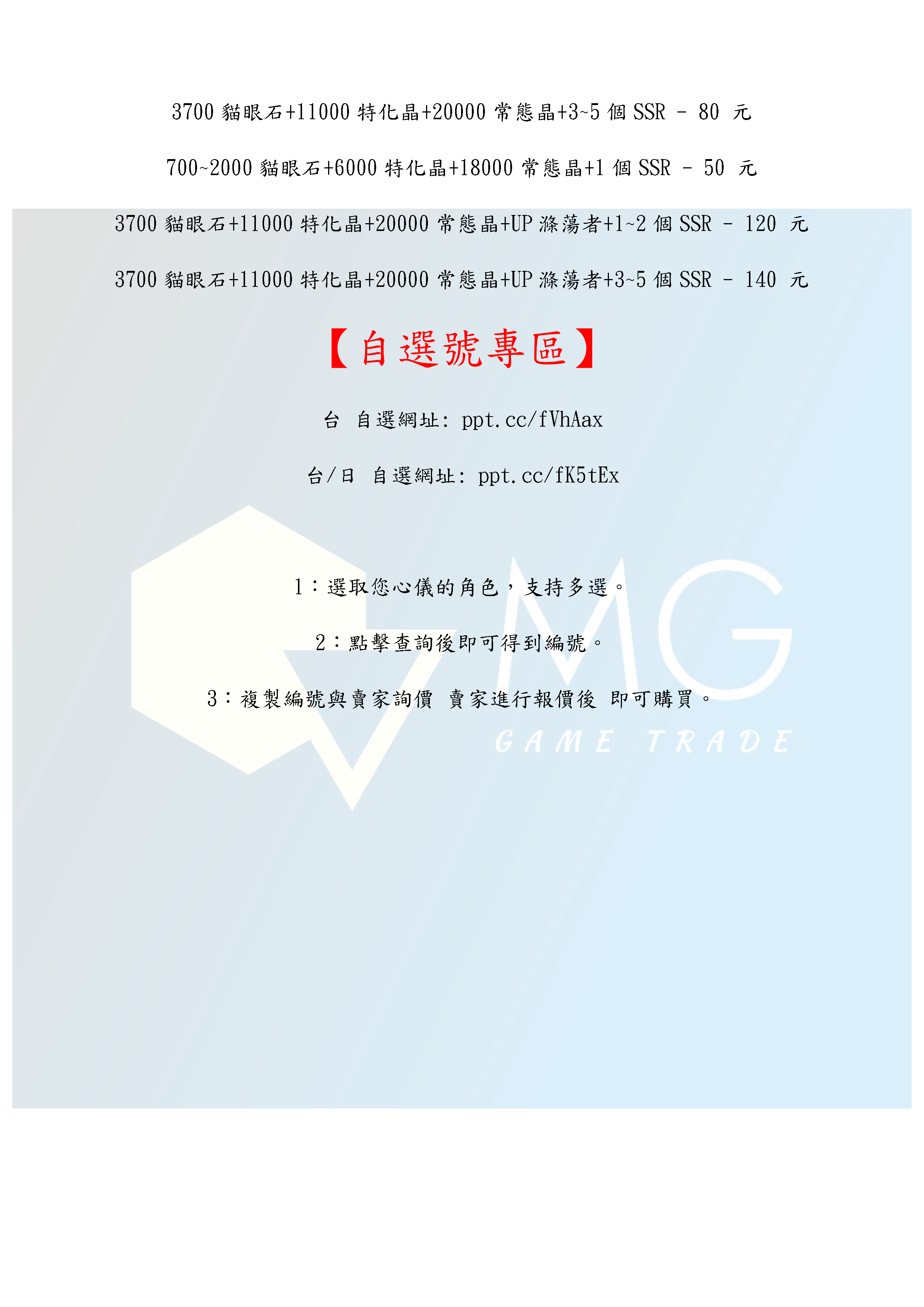 帳號 【初始號】 【MG數碼】 台服 陸服 多石號 多常能續晶號 初始號 自抽號 自選號 自選組合
