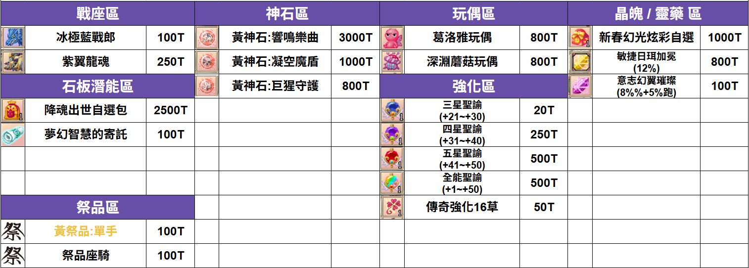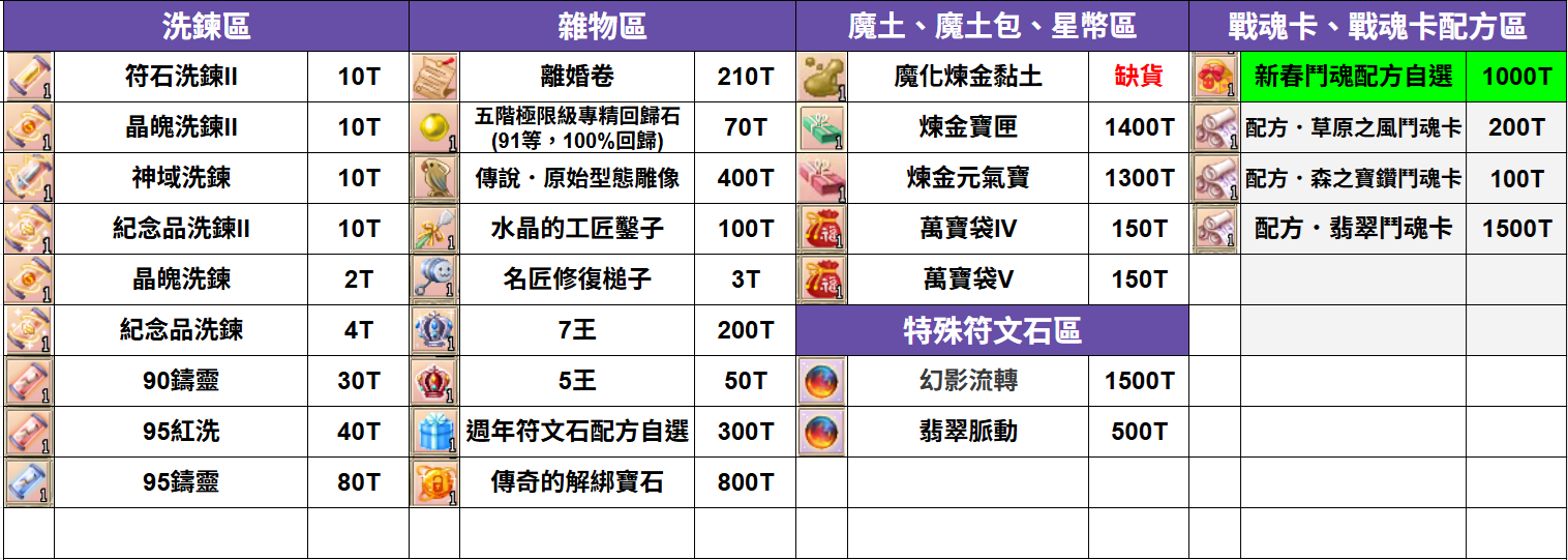 道具 🌞聖光小舖🌞🔥3/11更新🔥(洗鍊、自選、魂卡、石板、神石,等等道具)