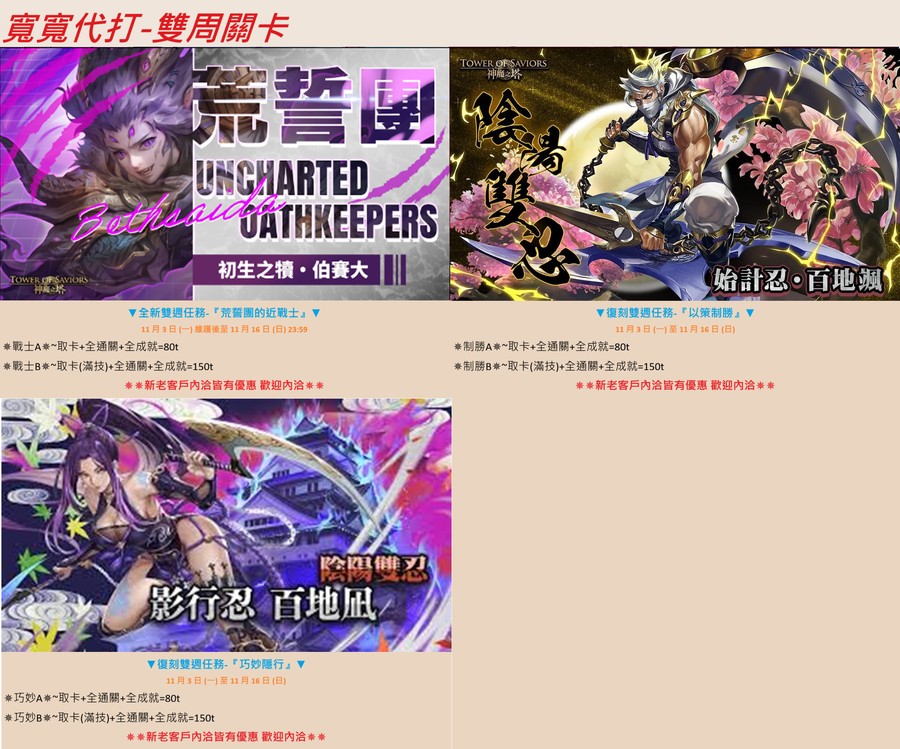 1.代打期間請勿登入 如有特殊需求可以跟我們說