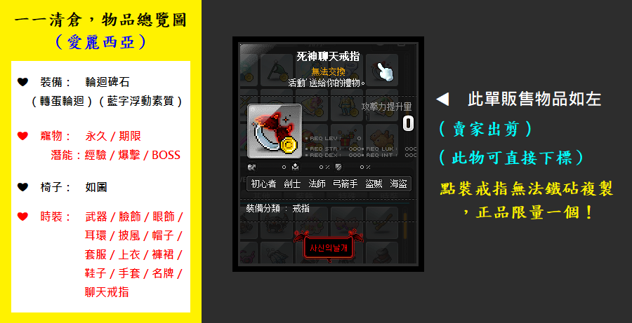 道具 【死神聊天戒指】 一一◆剪刀上架💖死神聊天戒指/彩虹雲朵/冒險/聖誕/NOVA/娜歐名牌💖點裝