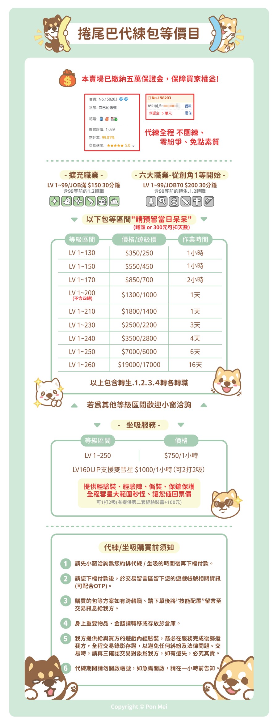 下單完成後,請在交易訊息內提供以下代練資料1.遊戲帳號:2.遊戲密碼:3.二次密碼:4.人物ID:5.職業:6.技能配置:可參考以下仙境全書技能配置網址: https://ro.ntome.com/skill/pr 完成後點選右上角分享給我們連結~