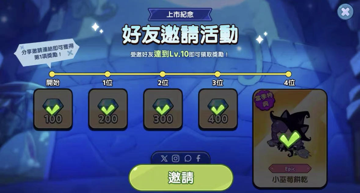 好友邀請 1位 60 4位 220