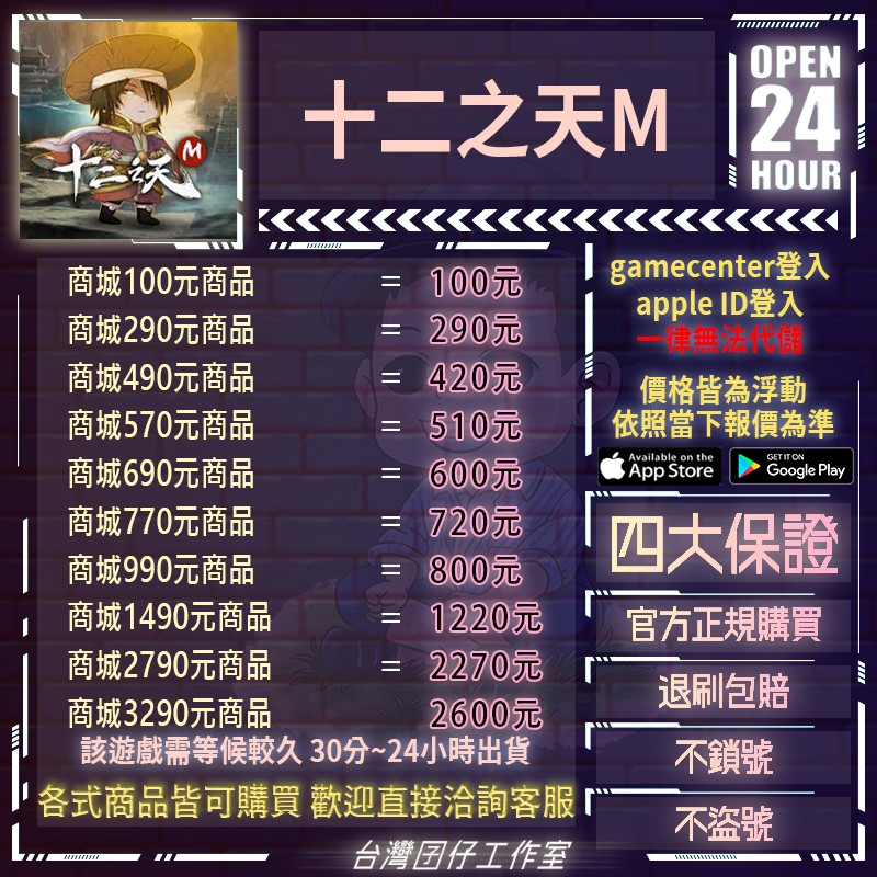 代儲【商城290元商品=290元】 🏆24H客服🏆十二之天M代儲🔥現貨秒出🔥台灣囝仔🔥