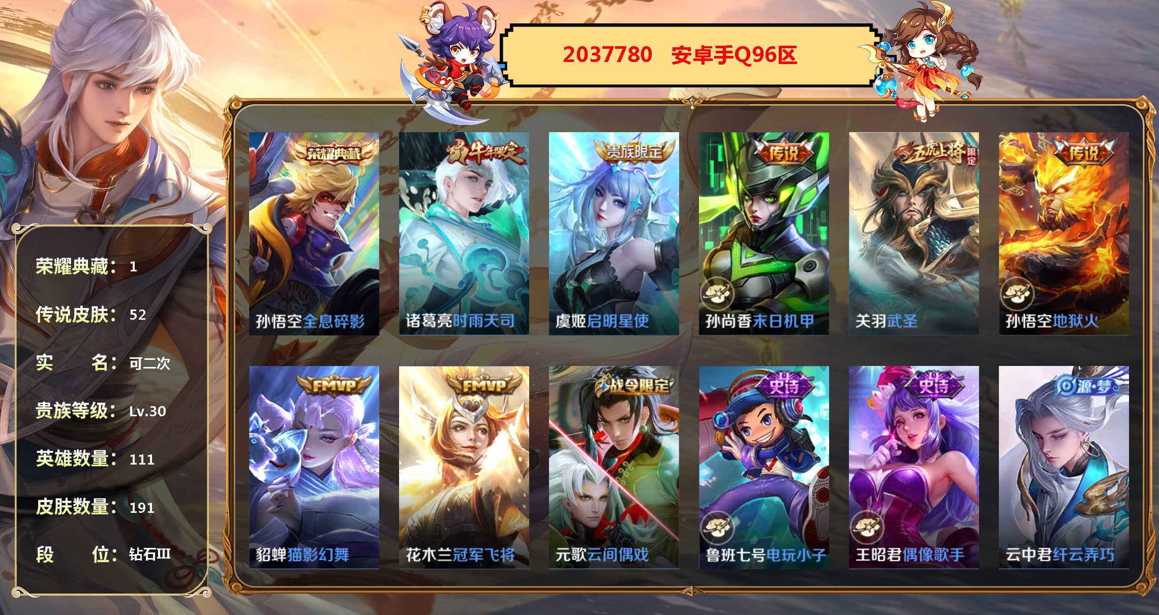 關羽-武聖,虞姬-啟明星使,諸葛亮-時雨天司