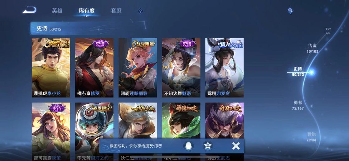 魯班七號,阿軻,盤古,米萊狄,大喬,東皇太一,韓信,豬八戒,亞瑟,西施,李元芳,女媧,孫策,貂蟬,弈星,夏侯惇,程咬金,扁鵲,蔡文姬,狄仁傑,小喬,狂鐵,露娜,楊玉環,盾山,明世隱,張良,司馬懿,成吉思汗,鍾無豔,花木蘭,安琪拉,孫臏,蒙犽,夏洛特,牛魔,鏡,虞姬,李信,蘭陵王,哪吒,元歌,典韋,艾琳,甄姬,劉禪,雅典娜,干將莫邪,夢奇,鬼谷子,阿古朵,莊周,妲己,瑤,項羽,達摩,后羿,嬴政,馬可波羅,暃,呂布,劉邦,馬超,武則天,黃忠,司空震,羋月,白起,太乙真人,娜可露露,瀾,關羽,墨子,百里守約,老夫子,趙雲,魯班大師,伽羅,張飛,諸葛亮,孫悟空,上官婉兒,姜子牙,孫尚香,雲纓,裴擒虎,不知火舞,楊戩,蘇烈,鍾馗,高漸離,廉頗,公孫離,曜,鎧,李白,蒙恬,劉備,王昭君,橘右京,沈夢溪,百里玄策,雲中君,桑啟,嫦娥,宮本武藏,曹操,周瑜