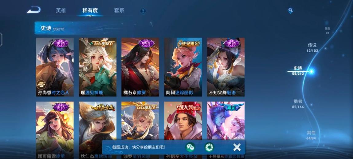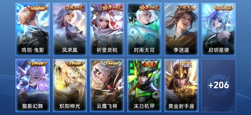 孫尚香-時之戀人,蘭陵王-隱刃,張飛-亂世虎臣,李元芳-特種部隊,花木蘭-劍舞者,女媧-尼羅河女神,豬八戒-潮玩探月行,明世隱-虹雲星官,劉邦-德古拉伯爵,夢奇-美夢成真,王昭君-幻想奇妙夜,張良-幽蘭居士,哪吒-三太子,妲己-紫羅蘭之誓,關羽-天啟騎士,李信-灼熱之刃,楊玉環-霓裳曲,大喬-守護之力,瑤-遇見神鹿,高漸離-金屬狂潮,豬八戒-年年有餘,姜子牙-熾熱元素使,狄仁傑-錦衣衛,鏡-冰刃幻境,老夫子-潮流仙人,曹操-超能戰警,李元芳-妄想特派,亞瑟-死亡騎士,蔡文姬-舞動綠茵,老夫子-功夫老勺,孫悟空-西部大鏢客,亞瑟-心靈戰警,雲中君-荷魯斯之眼,墨子-金屬風暴,瀾-孤獵,趙雲-未來紀元,娜可露露-晚螢,哪吒-熱血海灘,鬼谷子-阿摩司公爵,甄姬-冰雪圓舞曲,魯班大師-乓乓大師,露娜-緋紅之刃,韓信-街頭霸王,花木蘭-水晶獵龍者,曜-歸虛夢演,白起-星夜王子,孫臏-歸虛夢演,伽羅-花見巫女,阿軻-愛心護理,蘭陵王-暗隱獵獸者,百里守約-絕影神槍,典韋-黃金武士,盾山-圓桌騎士,不知火舞-魅語,孫尚香-水果甜心,甄姬-花好人間,劉邦-聖殿之光,狄仁傑-鷹眼統帥,花木蘭-兔女郎,沈夢溪-鯊炮海盜貓,周瑜-海軍大將,劉備-漢昭烈帝,諸葛亮-掌控之力,姜子牙-時尚教父,劉禪-英喵野望,劉禪-秘密基地,黃忠-芝加哥教父,李白-範海辛,弈星-踏雪尋梅,蘇烈-堅韌之力,小喬-萬聖前夜,扁鵲-化身博士,露娜-瓷語鑑心,李元芳-逐浪之夏,魯班七號-福祿兄弟,趙雲-忍·炎影,百里玄策-威尼斯狂歡,阿古朵-熊喵少女,西施-歸虛夢演,雲纓-赤焰之纓,王昭君-精靈公主,妲己-少女阿狸,司馬懿-魘語軍師,太乙真人-勁辣紅鍋,后羿-精靈王,魯班大師-歸虛夢演,鎧-曙光守護者,桑啟-畫中遊,嫦娥-露花倒影,小喬-繽紛獨角獸,阿軻-暗夜貓娘,馬超-倖存者,廉頗-地獄巖魂,孫臏-未來旅行,白起-樂園追獵者,達摩-大發明家,程咬金-無雙福將,上官婉兒-修竹墨客,金蟬-前塵,盤古-創世神祝,百里玄策-熱力迴旋,鬼谷子-幻樂之宴,孫策-貓狗日記,蒙犽-歸虛夢演,安琪拉-心靈駭客,橘右京-修羅,虞姬-加勒比小姐,劉禪-天才門將,關羽-龍騰萬里,李白-千年之狐,韓信-教廷特使,蒙恬-秩序獵龍將,莊周-奇妙博物學,狂鐵-命運角鬥場,露娜-哥特玫瑰,魯班七號-電玩小子,張良-一千零一夜,楊戩-次元傲視,劉備-萬事如意,干將莫邪-第七人偶,王昭君-偶像歌手,貂蟬-異域舞娘,蔡文姬-薔薇王座,哪吒-次元突破,馬可波羅-激情綠茵,妲己-魅力維加斯,盤古-重灌意志,雅典娜-戰爭女神,張良-繽紛繪卷,達摩-拳王,張良-古海尋蹤,元歌-午夜歌劇院,鍾無豔-聚星閃耀,楊戩-埃及法老,孫尚香-沉穩之力,夏侯惇-乘風破浪,鍾馗-地府判官,羋月-紅桃皇后,瑤-森,成吉思汗-維京掠奪者,鍾無豔-海灘麗影,后羿-阿爾法小隊,狂鐵-特工戰影,伽羅-箭羽風息,大喬-伊勢巫女,小喬-丁香結,鎧-龍域領主,妲己-女僕咖啡,東皇太一-東海龍王,太乙真人-圓桌騎士