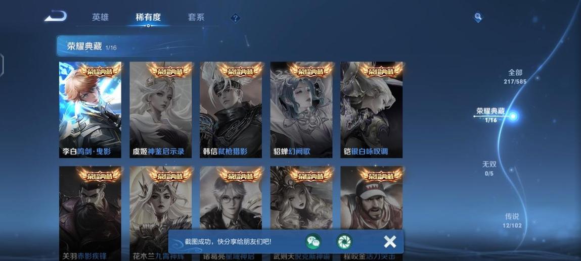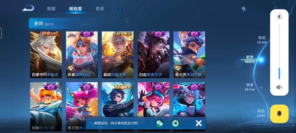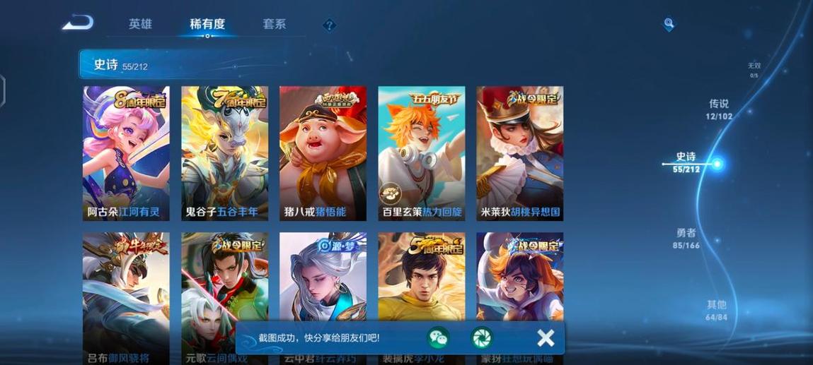 魯班七號,阿軻,盤古,米萊狄,大喬,東皇太一,韓信,豬八戒,亞瑟,西施,李元芳,女媧,孫策,貂蟬,弈星,夏侯惇,程咬金,扁鵲,蔡文姬,狄仁傑,小喬,狂鐵,露娜,楊玉環,盾山,明世隱,張良,司馬懿,成吉思汗,鍾無豔,趙懷真,花木蘭,安琪拉,孫臏,蒙犽,夏洛特,牛魔,鏡,虞姬,李信,蘭陵王,哪吒,元歌,典韋,艾琳,甄姬,劉禪,雅典娜,干將莫邪,夢奇,鬼谷子,阿古朵,海諾,莊周,妲己,瑤,項羽,達摩,后羿,海月,嬴政,馬可波羅,暃,呂布,劉邦,馬超,金蟬,亞連,黃忠,司空震,羋月,白起,太乙真人,娜可露露,瀾,關羽,墨子,百里守約,趙雲,老夫子,魯班大師,伽羅,張飛,朵莉亞,諸葛亮,孫悟空,上官婉兒,姜子牙,孫尚香,雲纓,裴擒虎,不知火舞,姬小滿,楊戩,萊西奧,蘇烈,鍾馗,高漸離,廉頗,公孫離,曜,鎧,李白,蒙恬,劉備,王昭君,橘右京,沈夢溪,百里玄策,雲中君,戈婭,桑啟,嫦娥,宮本武藏,曹操,周瑜