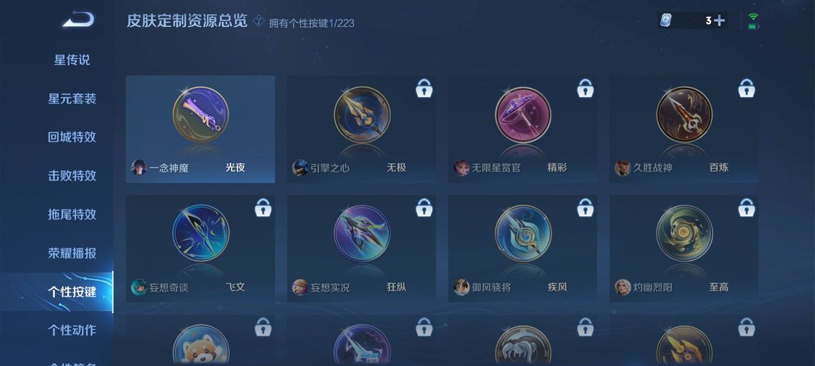 虞姬-雲霓雀翎,孫尚香-末日機甲,曜-雲鷹飛將,李信-一念神魔,貂蟬-貓影幻舞,達摩-黃金獅子座,孫悟空-地獄火,鎧-絳天戰甲,張良-黃金白羊座,狄仁傑-超時空戰士,貂蟬-仲夏夜之夢,鏡-熾陽神光,夢奇-胖達榮榮