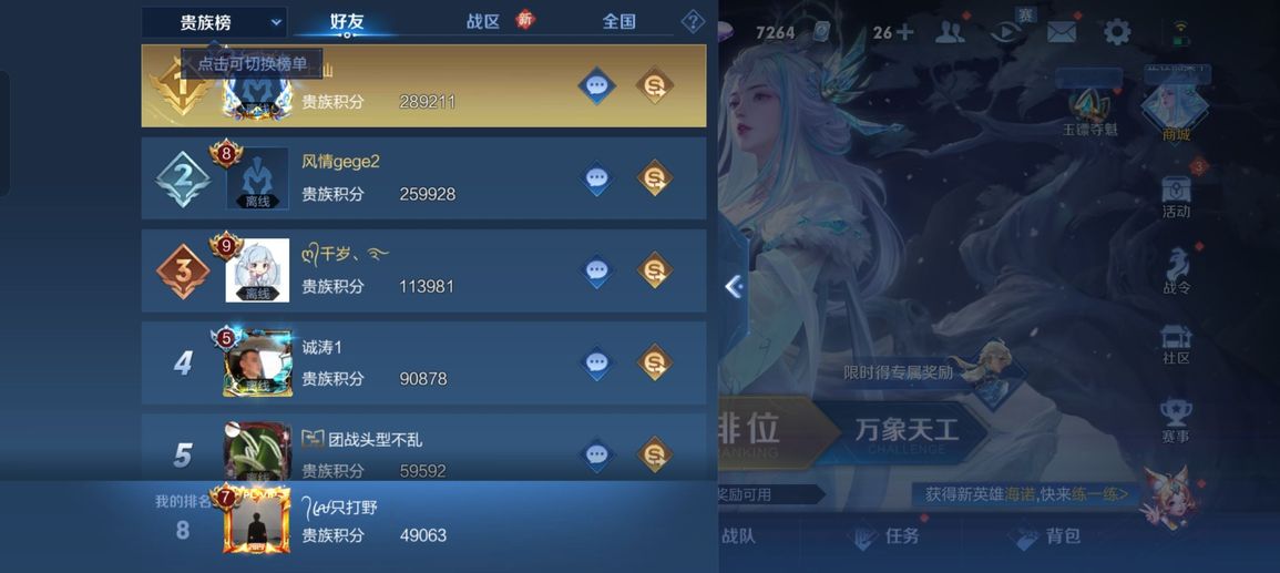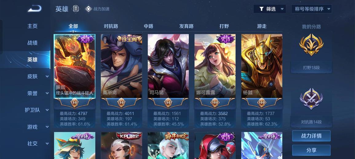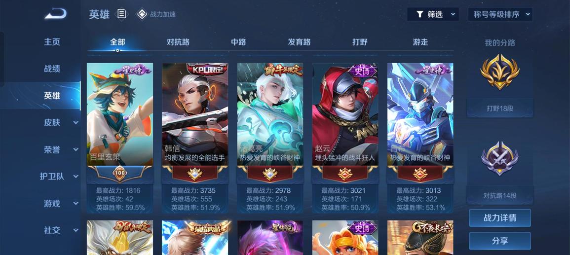 阿軻,魯班七號,盤古,米萊狄,大喬,東皇太一,韓信,豬八戒,亞瑟,西施,李元芳,女媧,貂蟬,孫策,弈星,夏侯惇,程咬金,扁鵲,蔡文姬,狄仁傑,小喬,狂鐵,露娜,楊玉環,盾山,明世隱,張良,司馬懿,成吉思汗,鍾無豔,趙懷真,安琪拉,花木蘭,孫臏,蒙犽,夏洛特,牛魔,鏡,虞姬,李信,哪吒,蘭陵王,元歌,典韋,艾琳,甄姬,劉禪,雅典娜,干將莫邪,夢奇,鬼谷子,海諾,阿古朵,莊周,妲己,項羽,瑤,達摩,后羿,海月,嬴政,暃,馬可波羅,呂布,劉邦,馬超,金蟬,亞連,黃忠,司空震,羋月,白起,太乙真人,娜可露露,瀾,關羽,墨子,百里守約,趙雲,老夫子,魯班大師,伽羅,張飛,朵莉亞,諸葛亮,孫悟空,上官婉兒,姜子牙,孫尚香,雲纓,裴擒虎,不知火舞,姬小滿,楊戩,萊西奧,蘇烈,鍾馗,高漸離,廉頗,公孫離,曜,鎧,李白,蒙恬,劉備,王昭君,橘右京,沈夢溪,百里玄策,雲中君,戈婭,桑啟,嫦娥,宮本武藏,曹操,周瑜