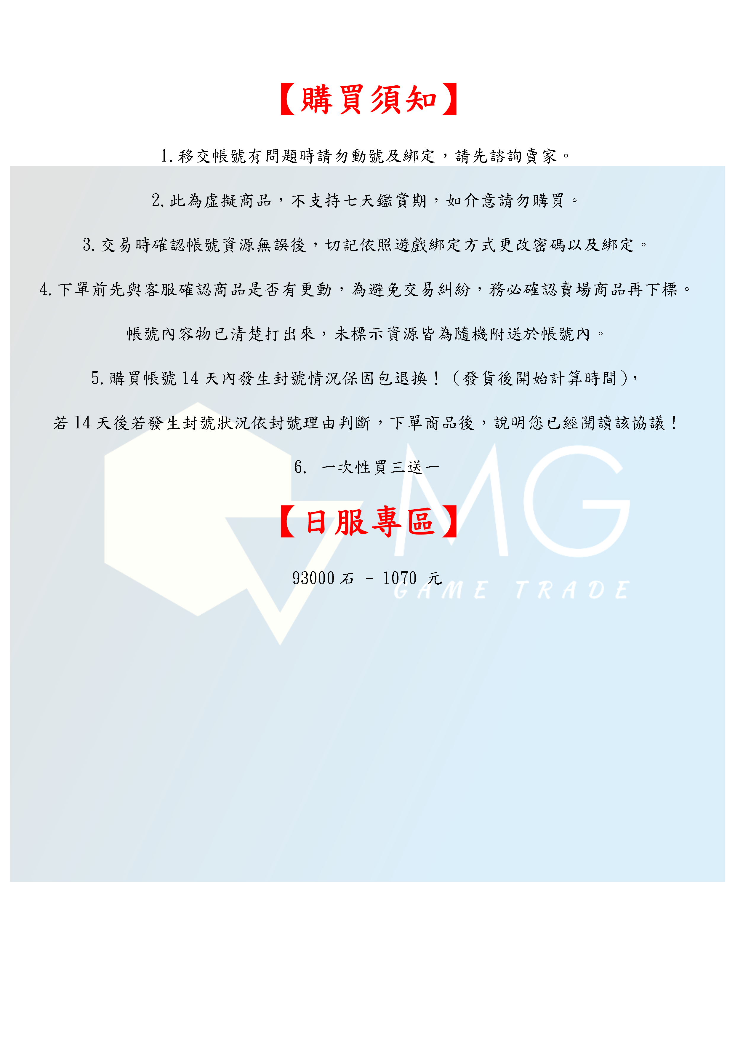 3.交易時確認帳號資源無誤後,切記依照遊戲綁定方式更改密碼以及綁定。