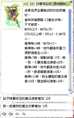 +12B階鋼鐵魔杖LT 暗屬性魔物增傷22% 一般魔物19%