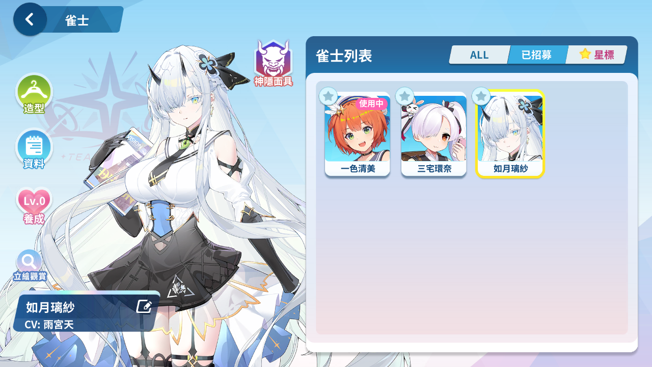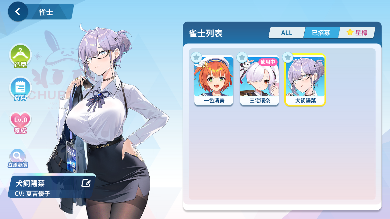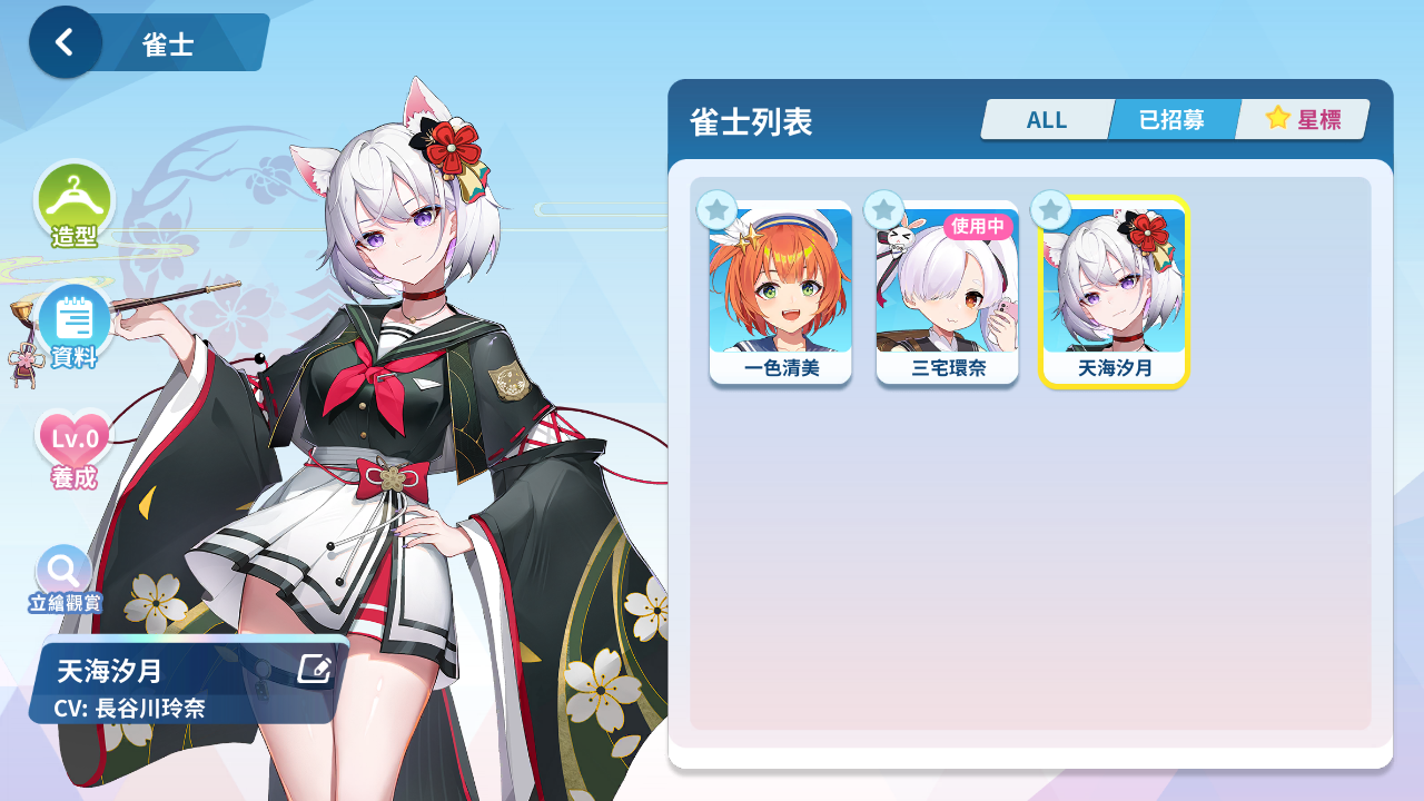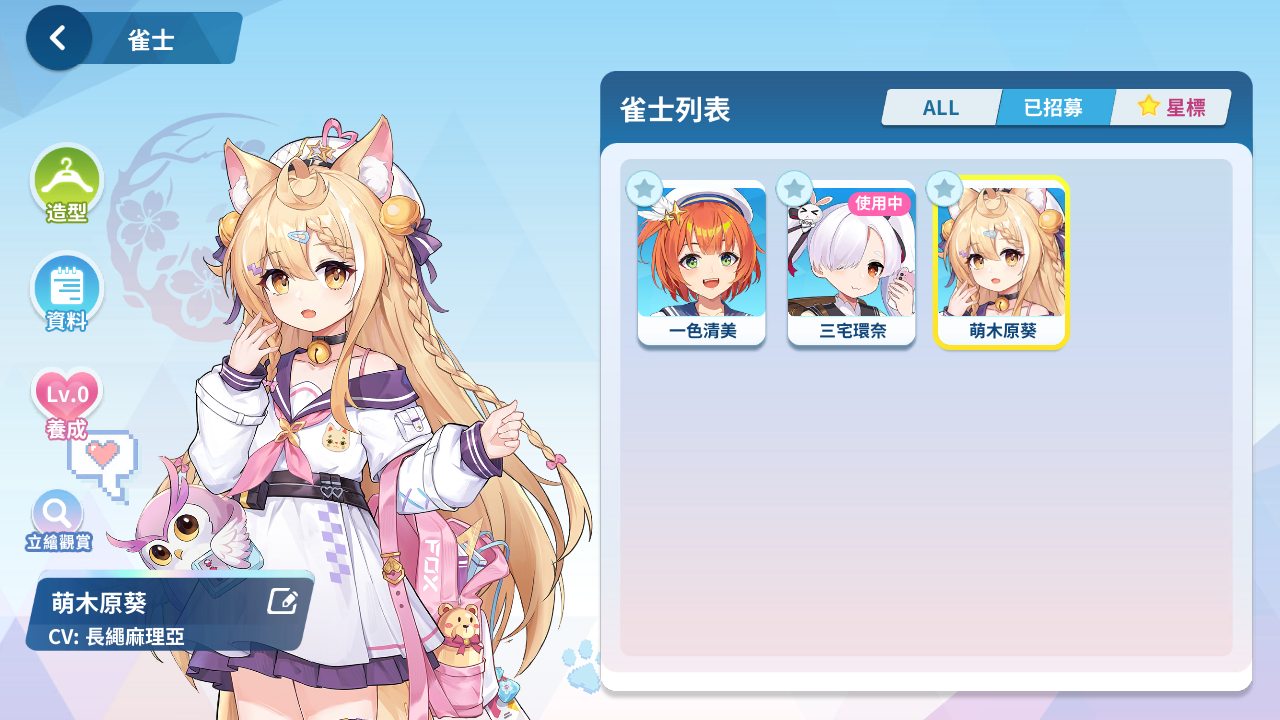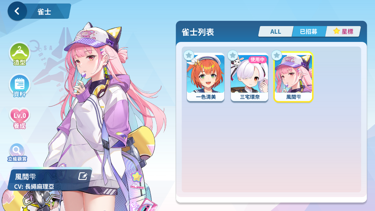 森流歌、冷泉繪芽子、艾爾茜、萌木原葵、風間雫、五月女百合香、白羽飛鳥、原道雪、夏海真凜、音無郁子、九鬼蓮心、小倉奏、赤羽雅典娜、東方凪、梅妮亞、深瀨愛麗絲、天海汐月、犬飼陽菜、五十嵐紗子、不破真晝、、、