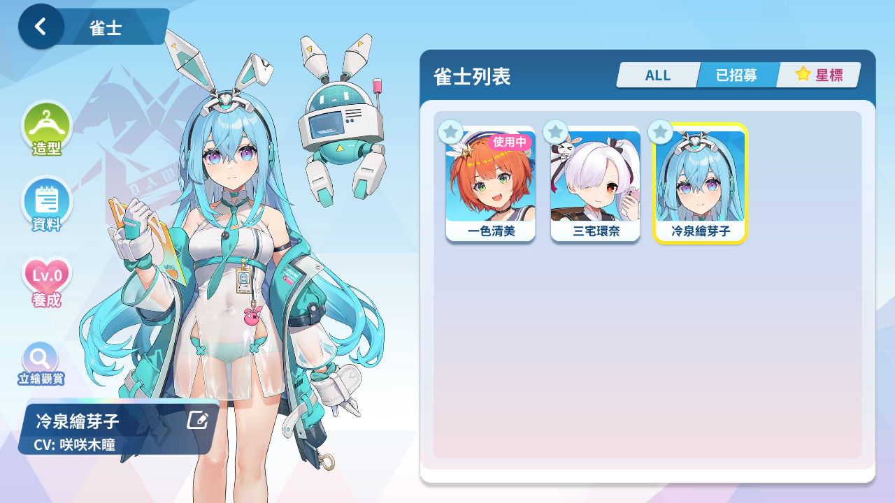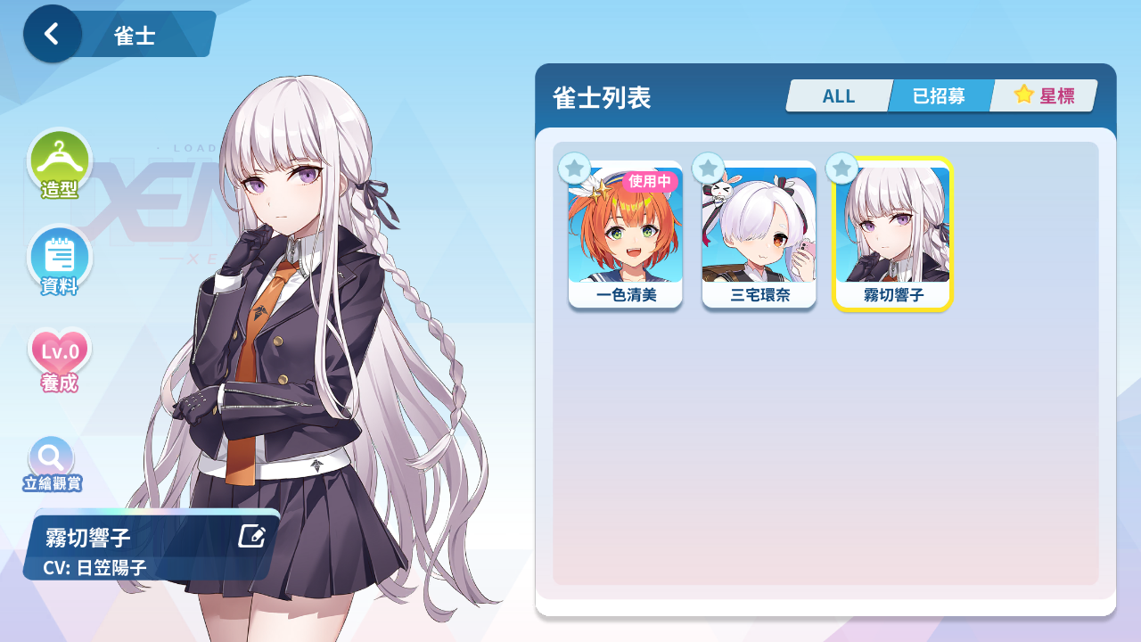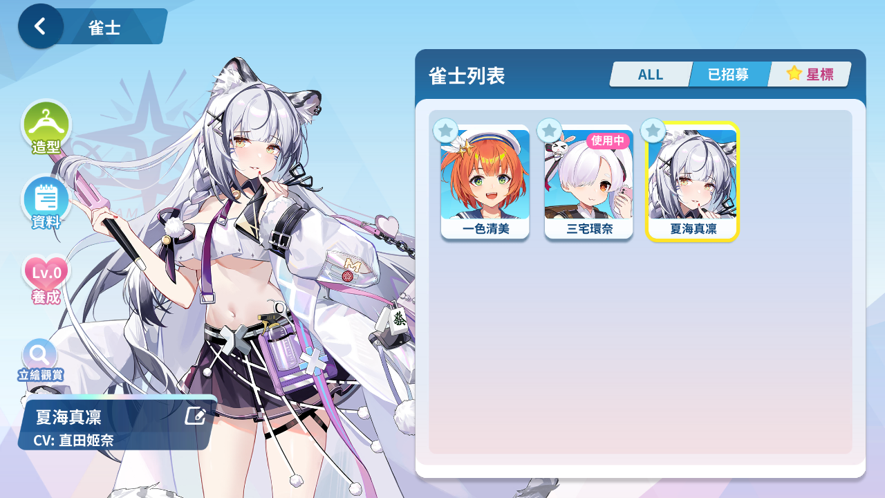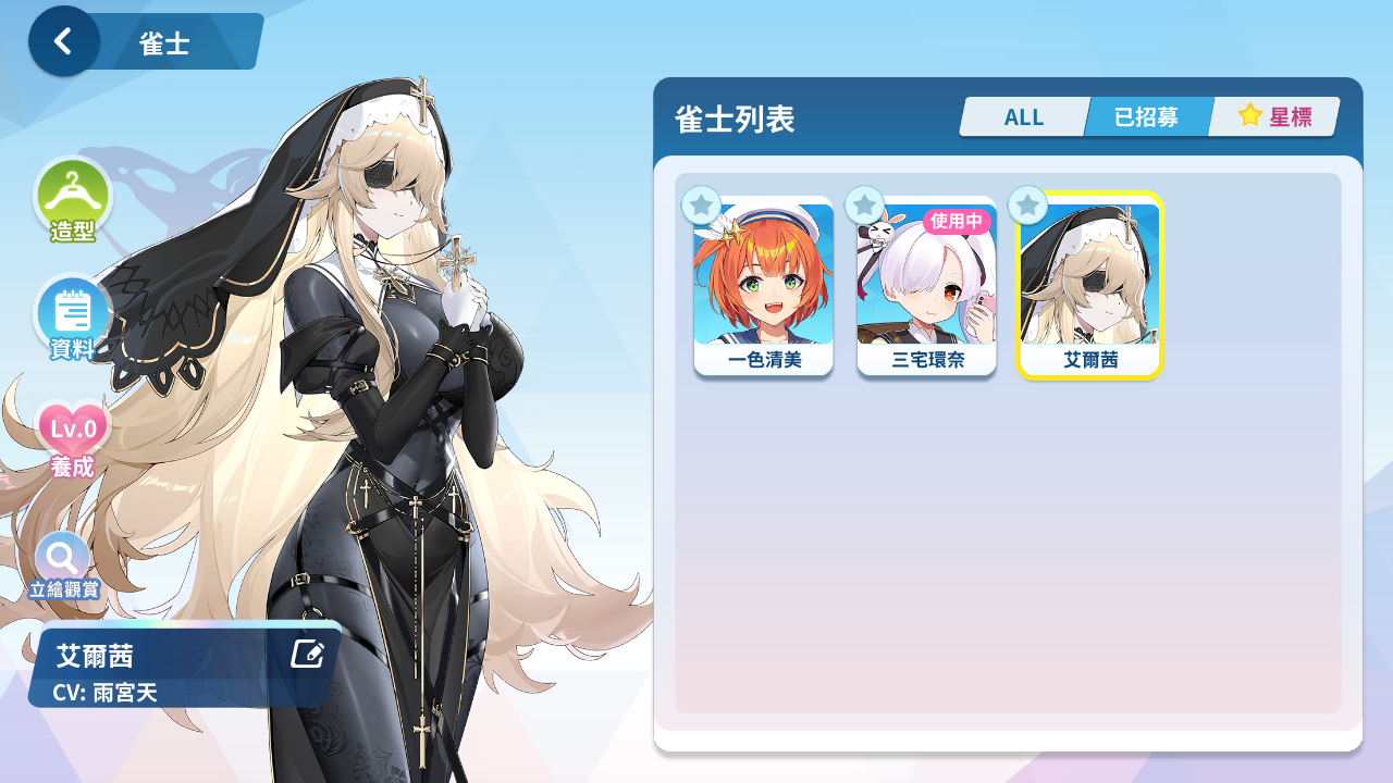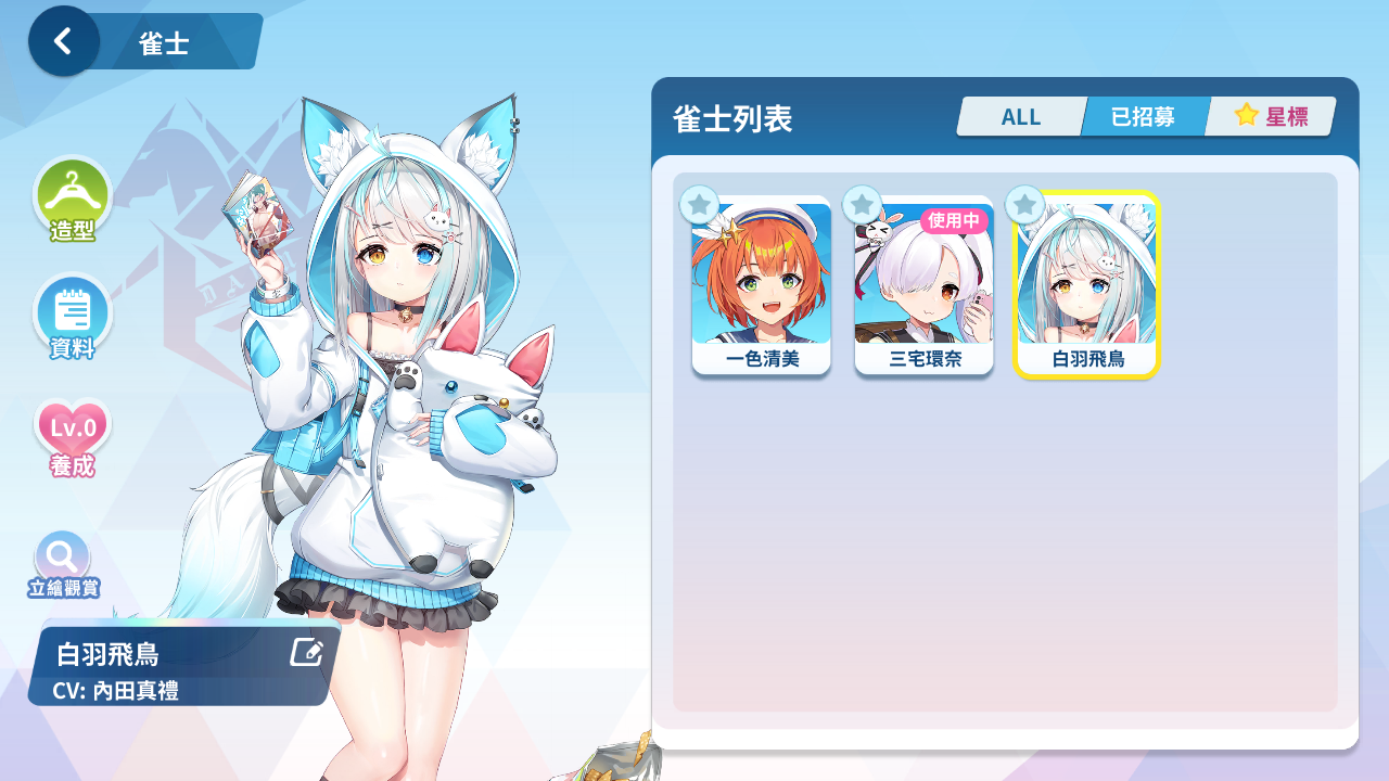 森流歌、冷泉繪芽子、艾爾茜、萌木原葵、風間雫、五月女百合香、白羽飛鳥、原道雪、夏海真凜、音無郁子、九鬼蓮心、小倉奏、赤羽雅典娜、東方凪、梅妮亞、深瀨愛麗絲、天海汐月、犬飼陽菜、五十嵐紗子、不破真晝、、、