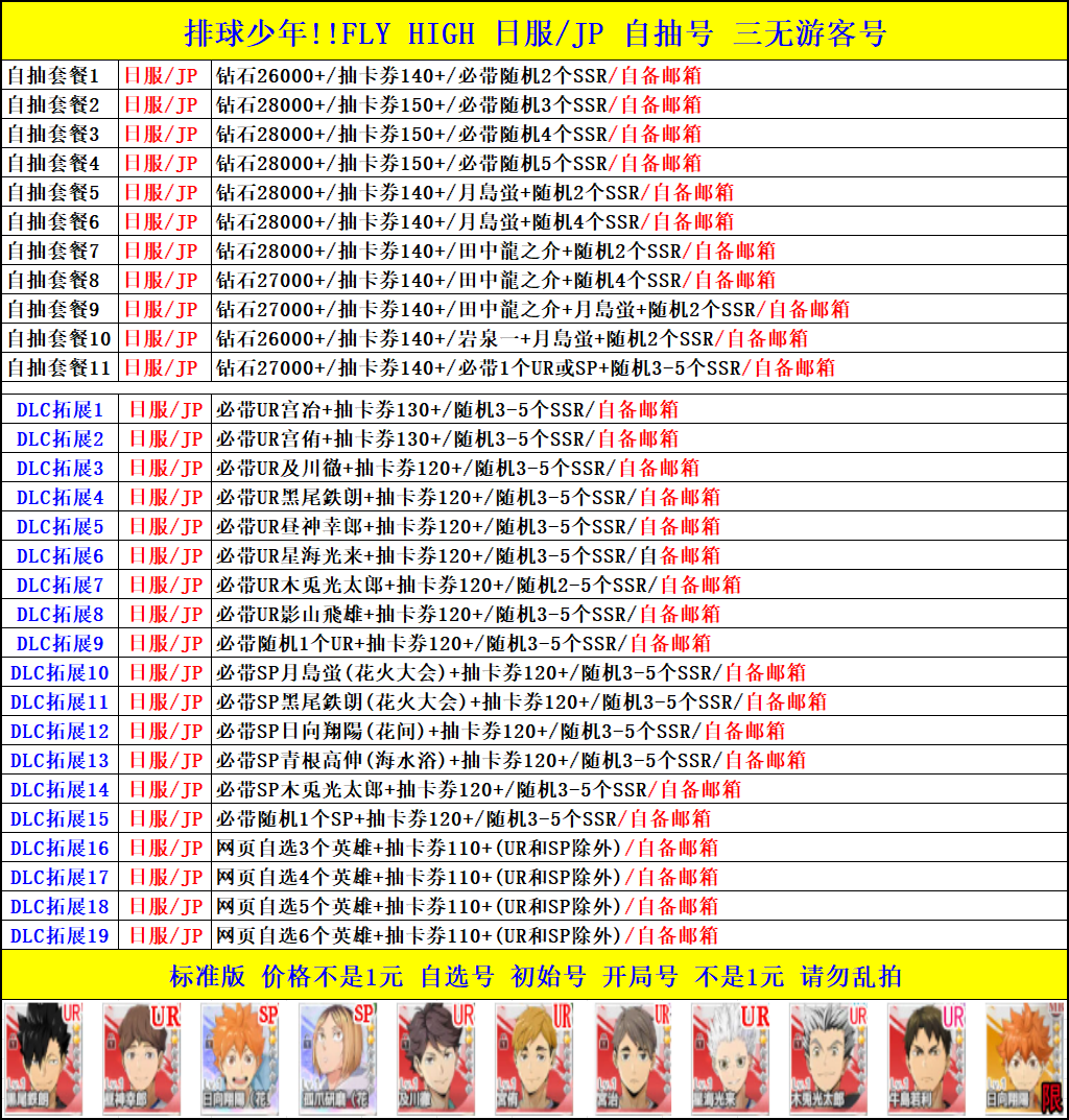 全 8591 首家 排球少年!!FLYHIGH日服初始號ハイキュー自抽首抽號開局自選組合