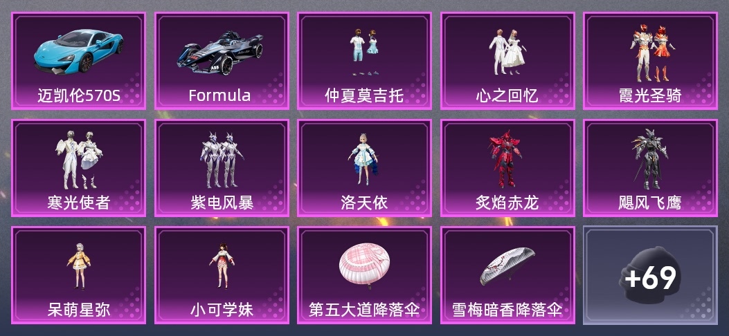 套裝-元氣發射,套裝-神氣柴柴,套裝-銀河聖歌,角色-孫悟空,套裝-靈蜜圈圈,角色-小可學妹,套裝-電音精靈,套裝-颶風飛鷹,角色-究極悟飯,套裝-銀碳小老虎,角色-呆萌星彌,套裝-SS22特訓,套裝-SS21特訓,套裝-SS24特訓,套裝-SS23特訓,套裝-妙紅點點,套裝-仲夏莫吉托,套裝-金耀舞者,套裝-藍調潮人,套裝-魔力冰咖,套裝-白蘭地假日,套裝-隱空刺,套裝-香榭午後,角色-短笛,套裝-霞光聖騎,套裝-心之回憶,套裝-龍舌蘭冰茶,套裝-萊茵河畔,套裝-紫電風暴,套裝-炙焰赤龍,套裝-幻彩翩翩,套裝-寒光使者,套裝-銀杏天影,角色-洛天依,套裝-貴族騎裝
