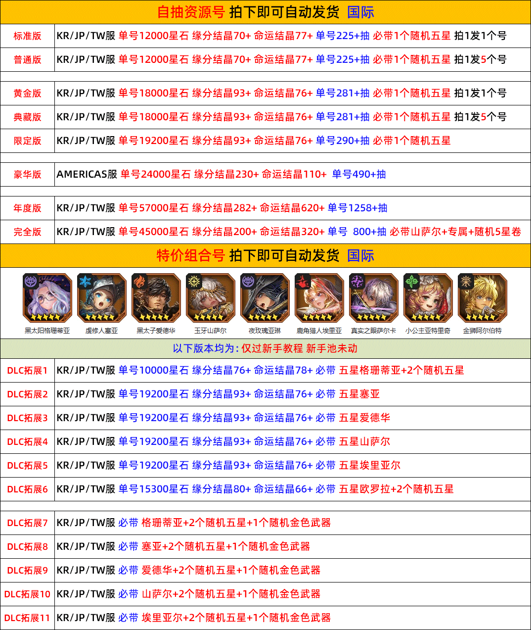 全 8591 首家 星之後裔2Knights of Veda初始自抽國際服港台服繁中版日服自選開局初始資源石頭號