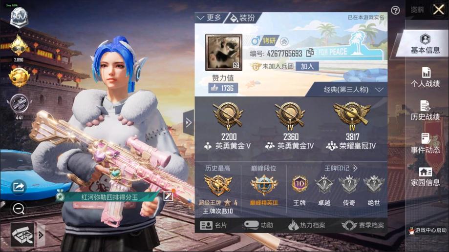 █可二次█100%包賠█秒發貨█69級10王牌印記巡查員當前皇冠,164套裝183槍皮,滿級M4心之戀語特效槍,百萬伏特貓包全套