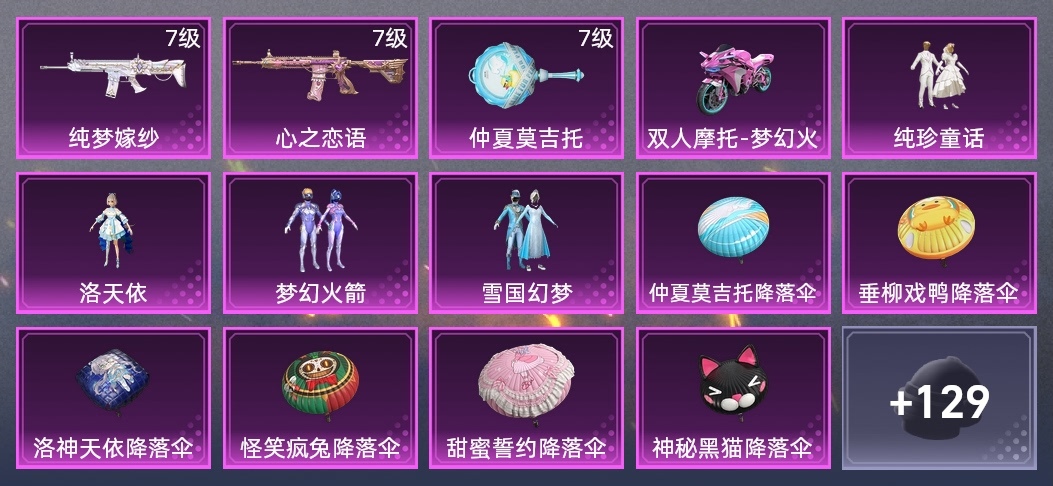 SPAS-12-田園牧歌,MP5K-怪笑瘋兔,AC-VAL-甜心亞夢,AUG-青春冒險家,GROZA-異彩先驅,Mini14-耀粉歌者,Kar98K-夢幻火箭,GROZA-懵萌河馬,Kar98K-影襲,M24-治癒之星,AKM-春暖花開,M416-心之戀語,SLR-嬌憨豬豬,M249-妙紅點點,P90-飛馳魅影,DBS-甜心亞夢,M249-鐳射皇者,AMR-妙紅點點,QBZ-神秘黑貓,UZI-影襲,蜜獾-嬌憨豬豬,DP-28-甜心亞夢,M16A4-甜心亞夢,Mk47-洛神天依,AUG-怪笑瘋兔,VSS-鐳射皇者,Mini14-異彩先驅,野牛-青春冒險家,GROZA-治癒之星,AKM-影襲,AKM-萌趣顏糰子,S1897-鐳射皇者,UZI-嬌憨豬豬,S1897-神秘黑貓,Mk47-青春冒險家,UMP45-仲夏莫吉托,湯姆遜-異彩先驅,M200-仲夏莫吉托,MG3-妙紅點點,莫辛納甘-懵萌河馬,Vector-治癒之星,QBZ-洛神天依,M24-影襲,Mk14-治癒之星,UMP45-春暖花開,M24-仲夏莫吉托,Vector-田園牧歌,GROZA-田園牧歌,M762-鐳射皇者,S1897-春暖花開,S12K-嬌憨豬豬,GROZA-影襲,S1897-飛馳魅影,QBU-青春冒險家,SCAR-L-甜蜜誓約,Kar98K-飛馳魅影,平底鍋-仲夏莫吉托,蜜獾-垂柳戲鴨,MP5K-異彩先驅,Win94-怪笑瘋兔,SCAR-L-純夢嫁紗,M416-神秘黑貓,VSS-田園牧歌,Mk47-妙紅點點,Kar98K-洛神天依,Mk14-童趣迷兔,Mini14-夢幻火箭,G36C-懵萌河馬,PKM-懵萌河馬,QBZ-飛馳魅影