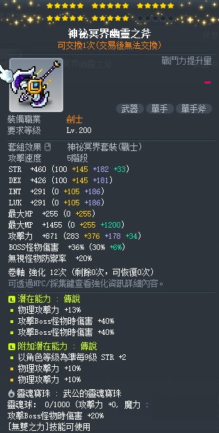 道具 【神祕冥界幽靈之斧】 25星 猛武公 頂淺能 80B13物 命運卷軸 雙傳 3S 惡殺 單手斧