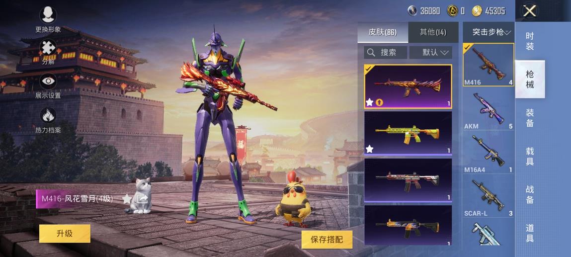 M762-奇異狩獵者,M416-風花雪月,S686-奇異狩獵者,AKM-星際浪客,M24-奇異狩獵者
