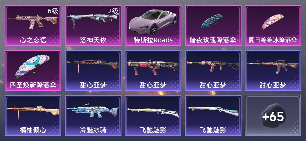 S1897-神秘黑貓,M416-滑板小狐,SLR-四聖煥新,湯姆遜-耀粉歌者,Win94-瑞龍福將,AC-VAL-甜心亞夢,S12K-瑞龍福將,G36C-暗夜玫瑰,DP-28-橘柚傾心,Vector-治癒之星,AUG-青春冒險家,VSS-黑色刀鋒,Mk14-治癒之星,Mini14-耀粉歌者,M24-治癒之星,M416-倉鼠灰灰,M416-心之戀語,G36C-綺夢青鸞,DBS-甜心亞夢,MG3-瑞龍福將,S1897-飛馳魅影,DBS-時空追擊者,M249-四聖煥新,M762-瑞龍福將,QBU-青春冒險家,QBZ-神秘黑貓,Vector-香水檸檬,SCAR-L-甜蜜誓約,SKS-時空追擊者,MG3-洛神天依,AUG-耀粉歌者,Kar98K-飛馳魅影,UMP45-時空追擊者,DP-28-甜心亞夢,M16A4-甜心亞夢,野牛-青春冒險家,M249-冷魅冰騎,GROZA-治癒之星,AKM-萌趣顏糰子,QBZ-飛馳魅影,Vector-黑色刀鋒