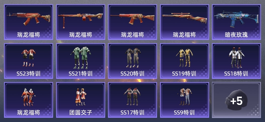 MG3-瑞龍福將,Win94-瑞龍福將,M762-瑞龍福將,S12K-瑞龍福將,G36C-暗夜玫瑰