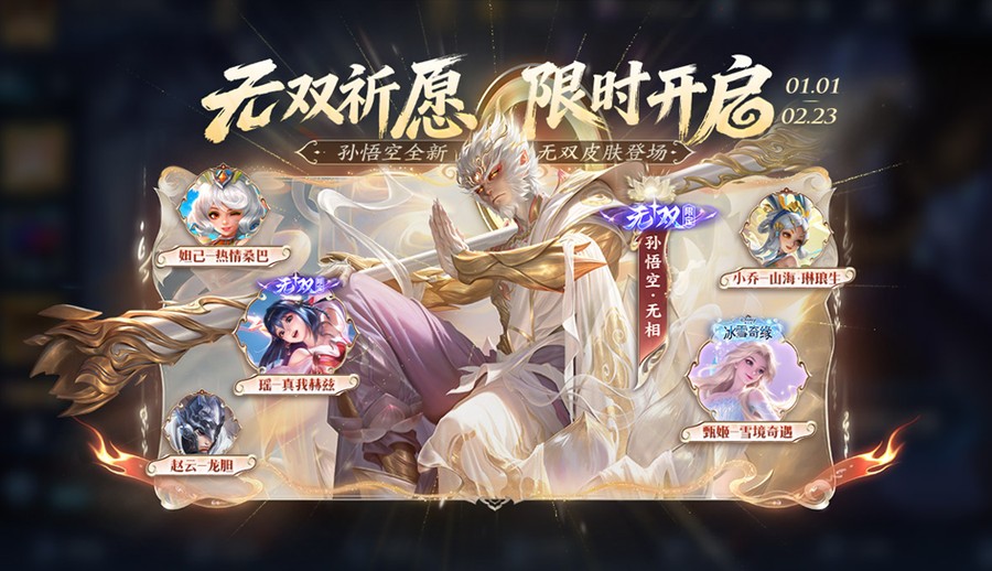 (孫悟空無相/甄姬雪境奇遇/瑤真我赫茲都是無雙皮膚)