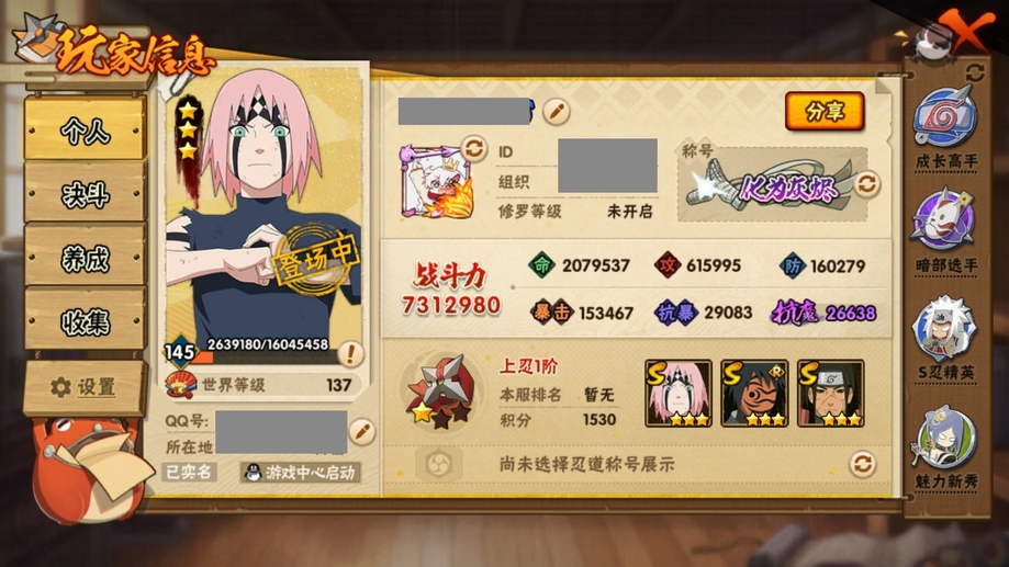 火影忍者> QQ客戶端> 1307區> QQ帳號